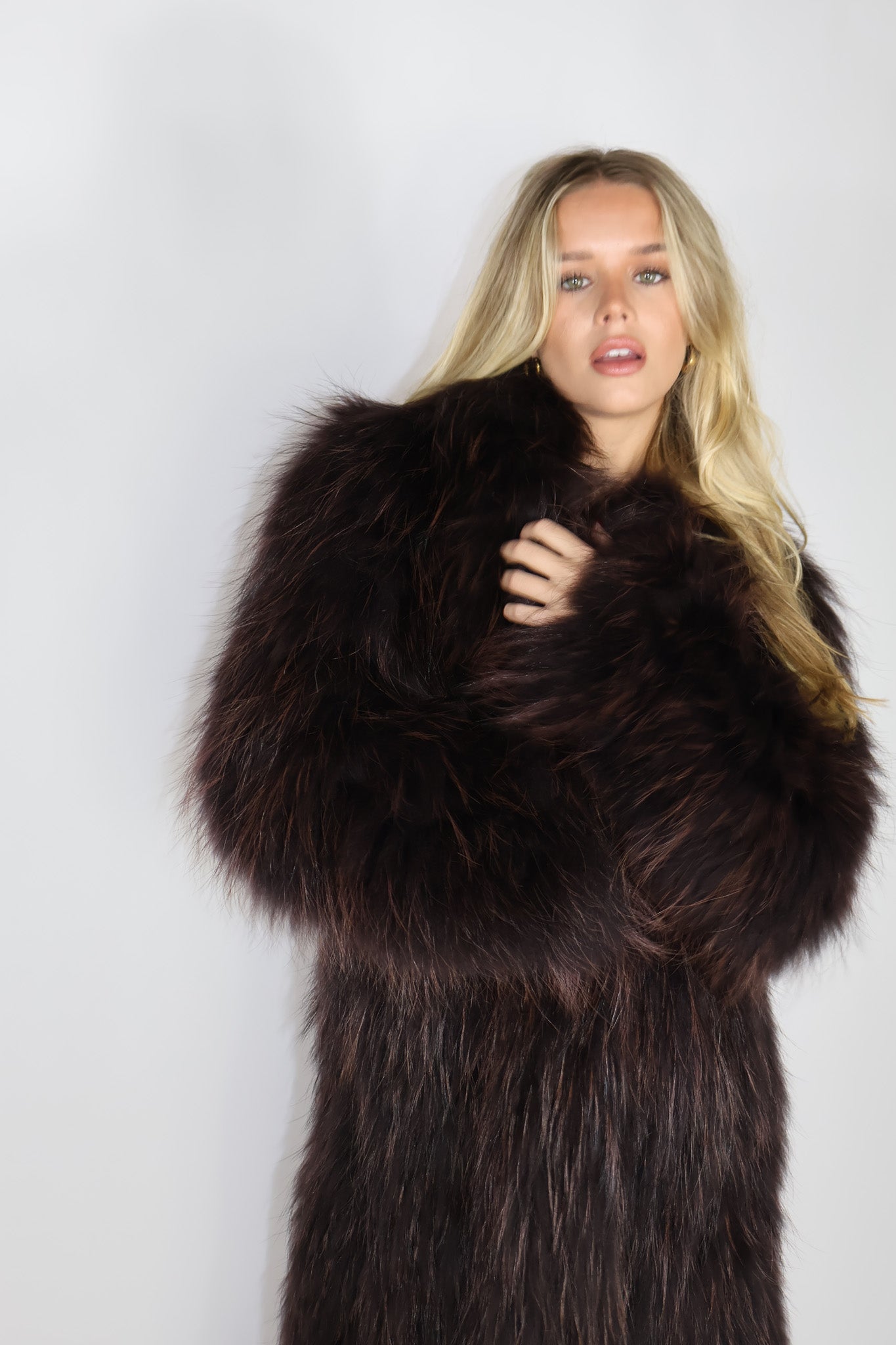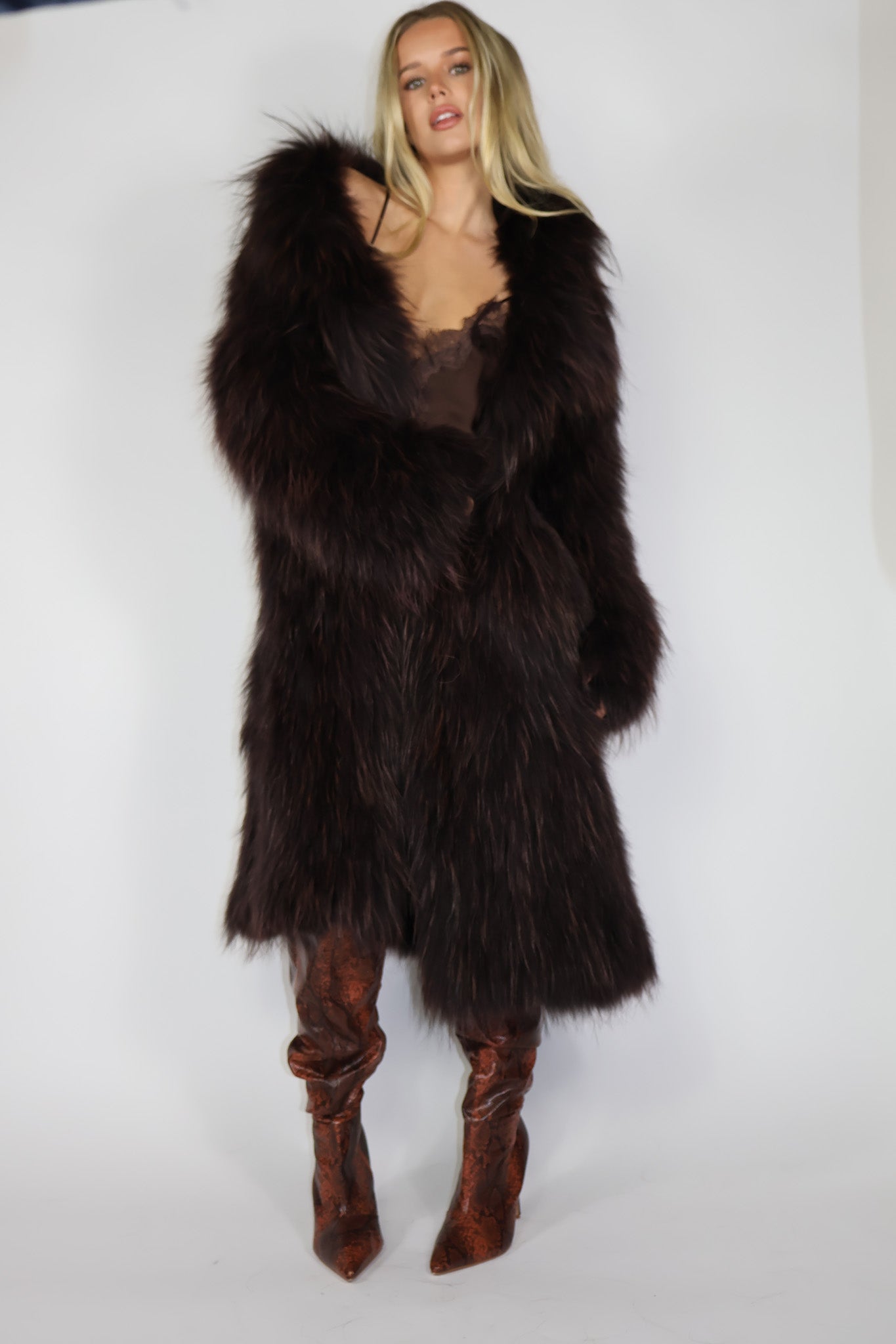 Add a decadent dose of va-va-voom in the Aster Long Fur Coat in Cocoa.