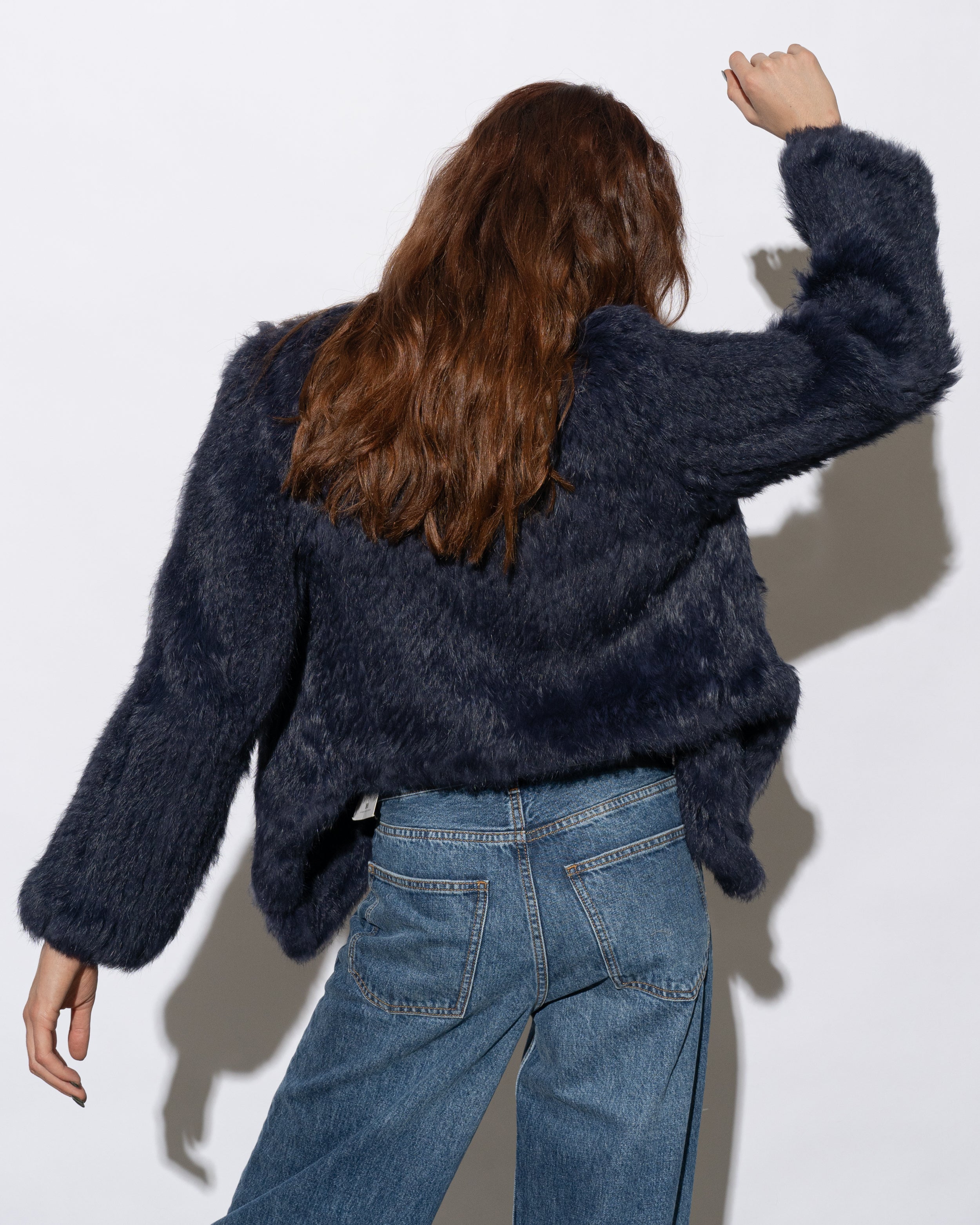 This rabbit fur jacket is resilient against a little spillage, a clean damp cloth or baby wipe will suffice for spot cleaning.