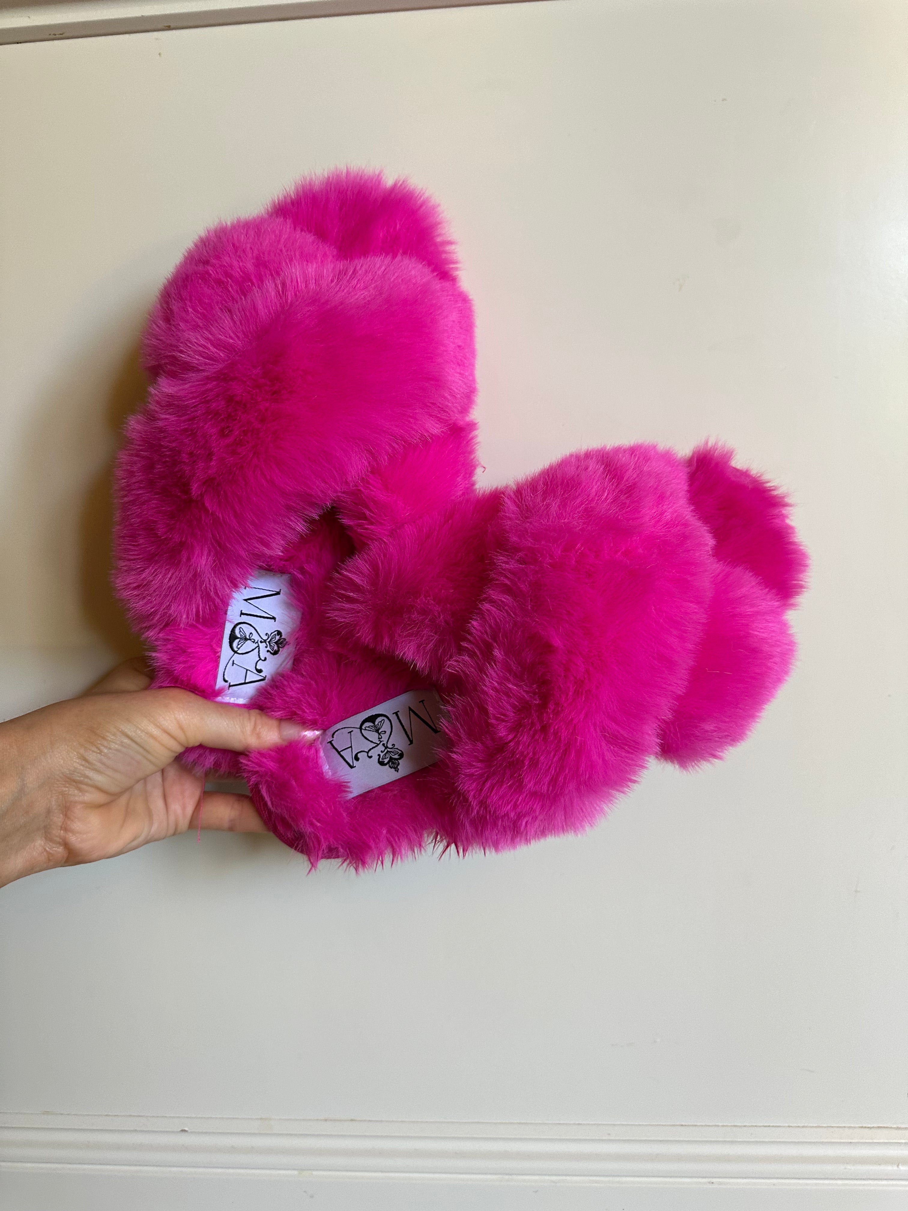 Say goodbye to boring slippers and hello to hot pink happiness! These bold, hot pink fluffy slippers are the ultimate statement piece for your feet. With irresistibly soft criss-cross straps that hug your toes like a cozy cloud, you’ll feel like you’re walking on sunshine (literally).