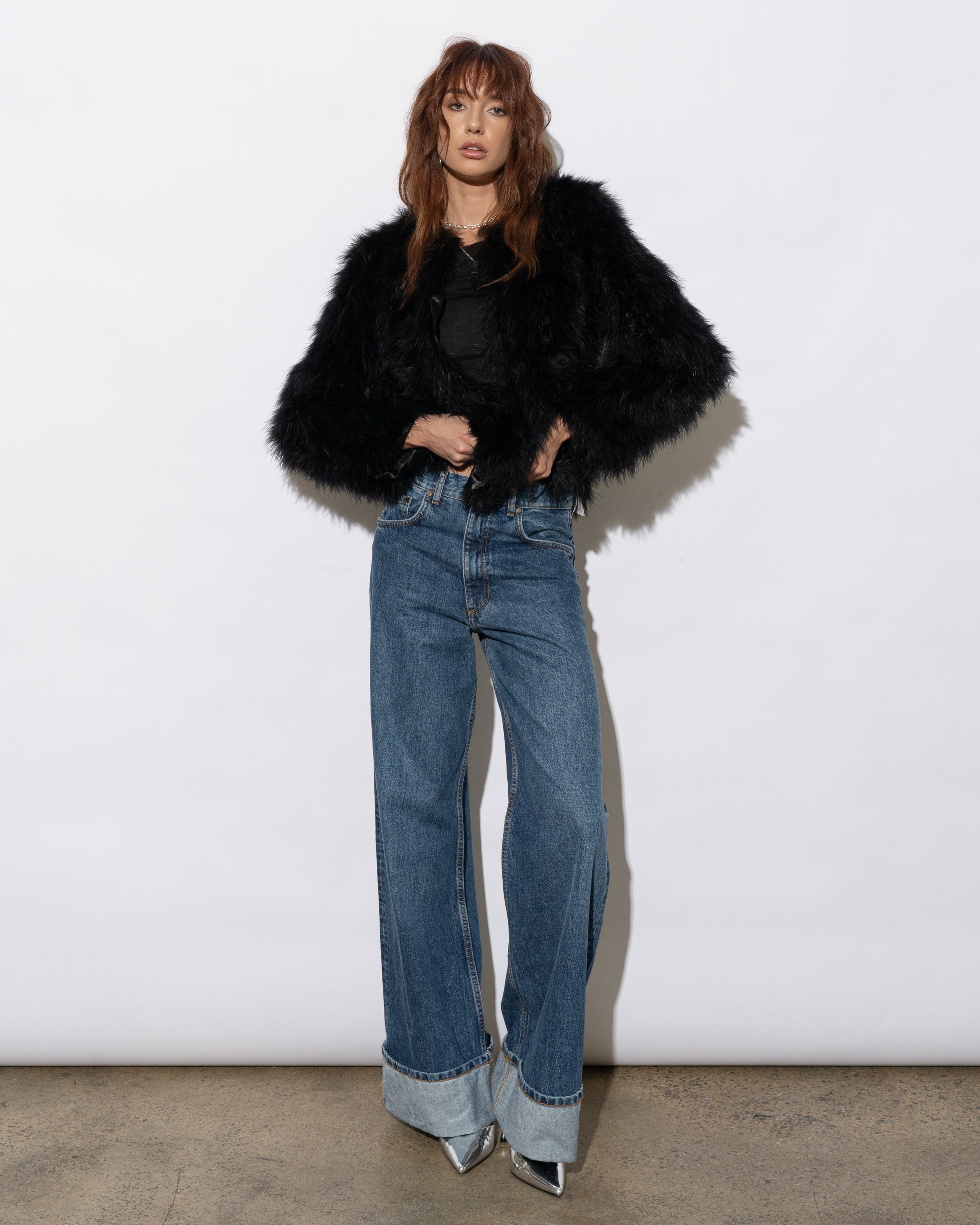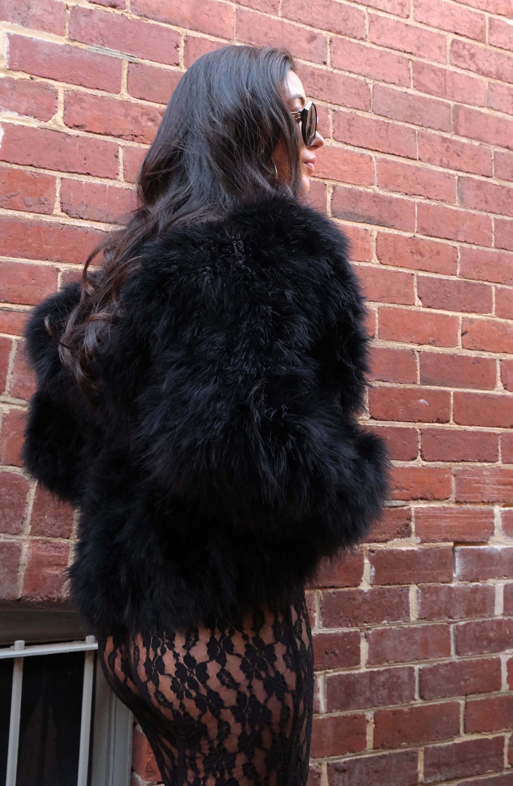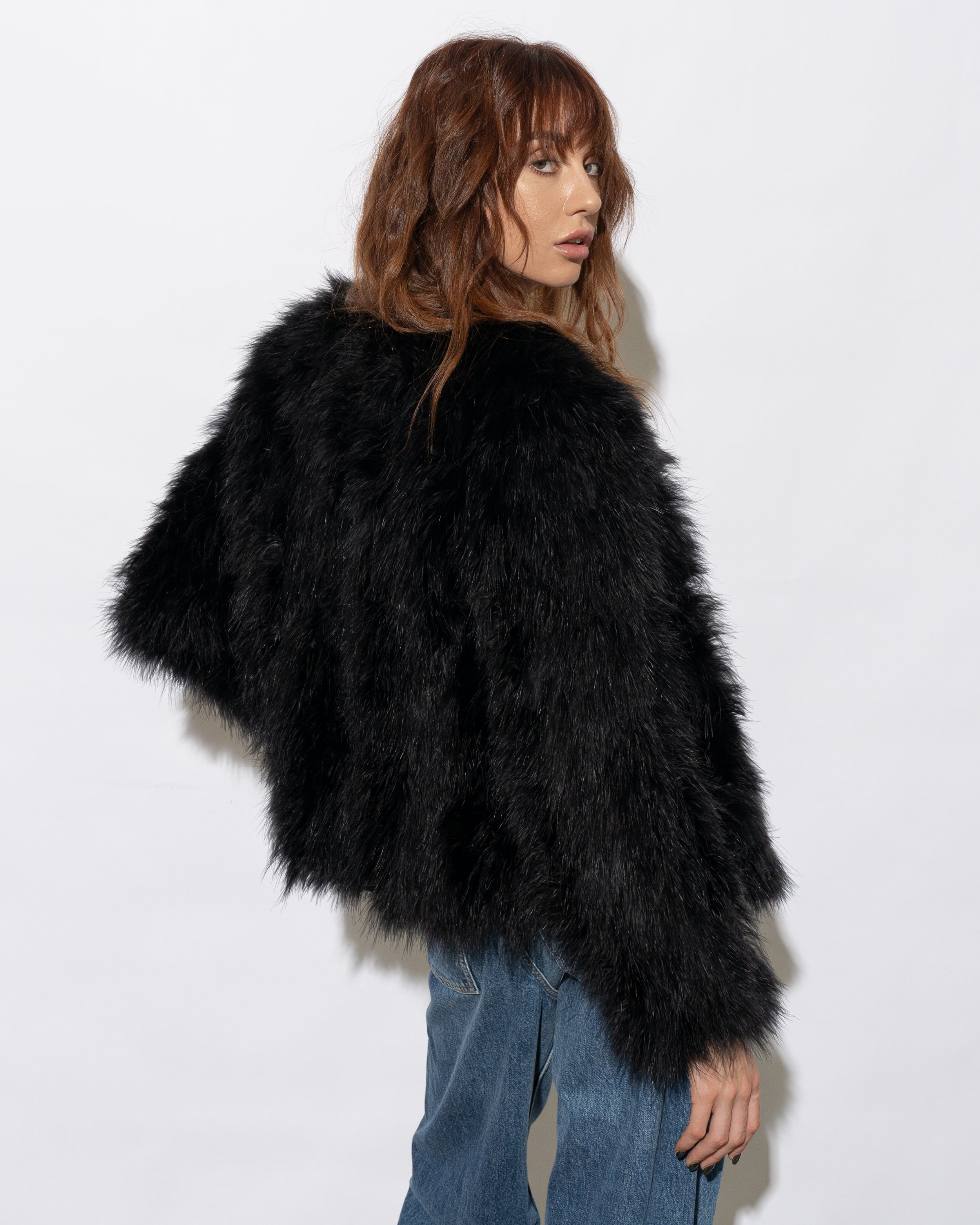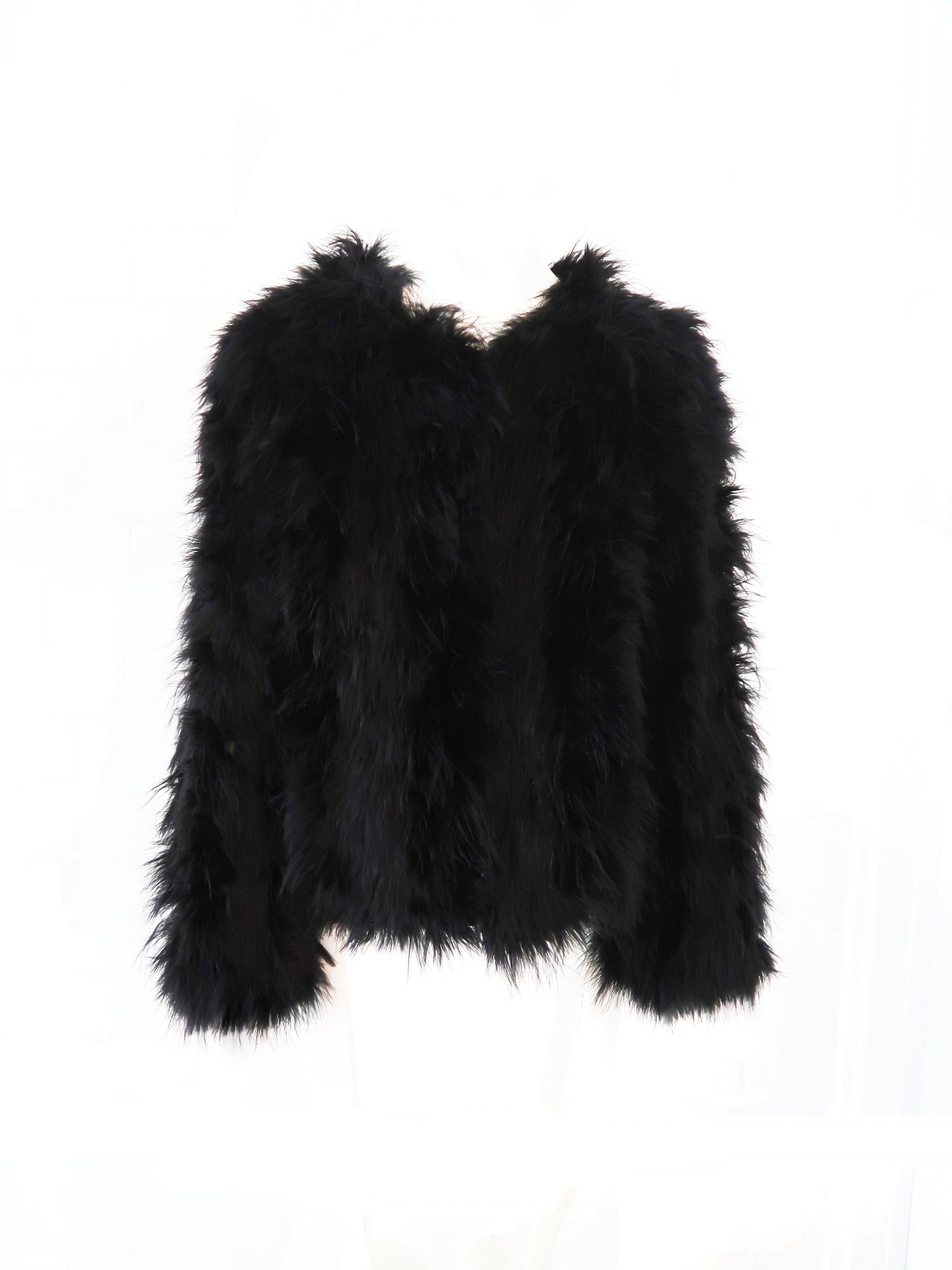 The Saville jacket is made from 100% marabou feather with satin lining.