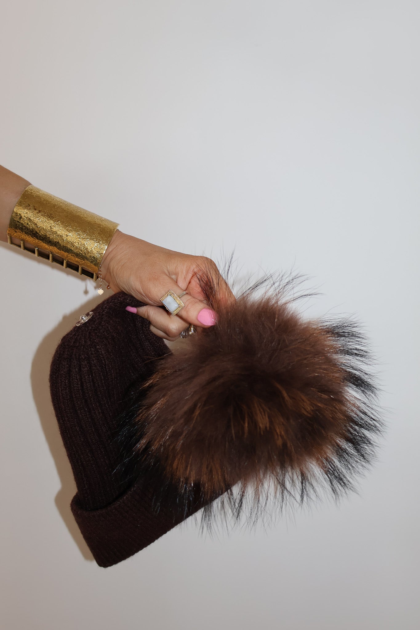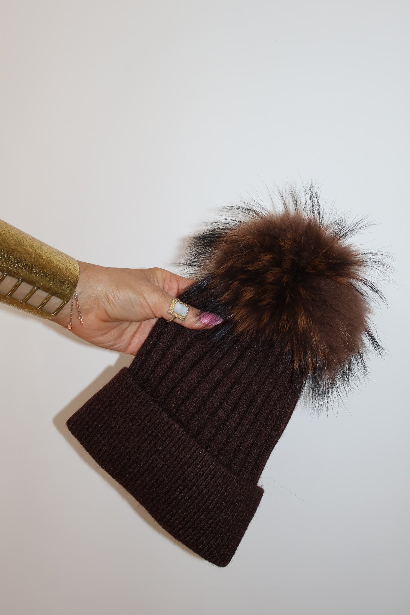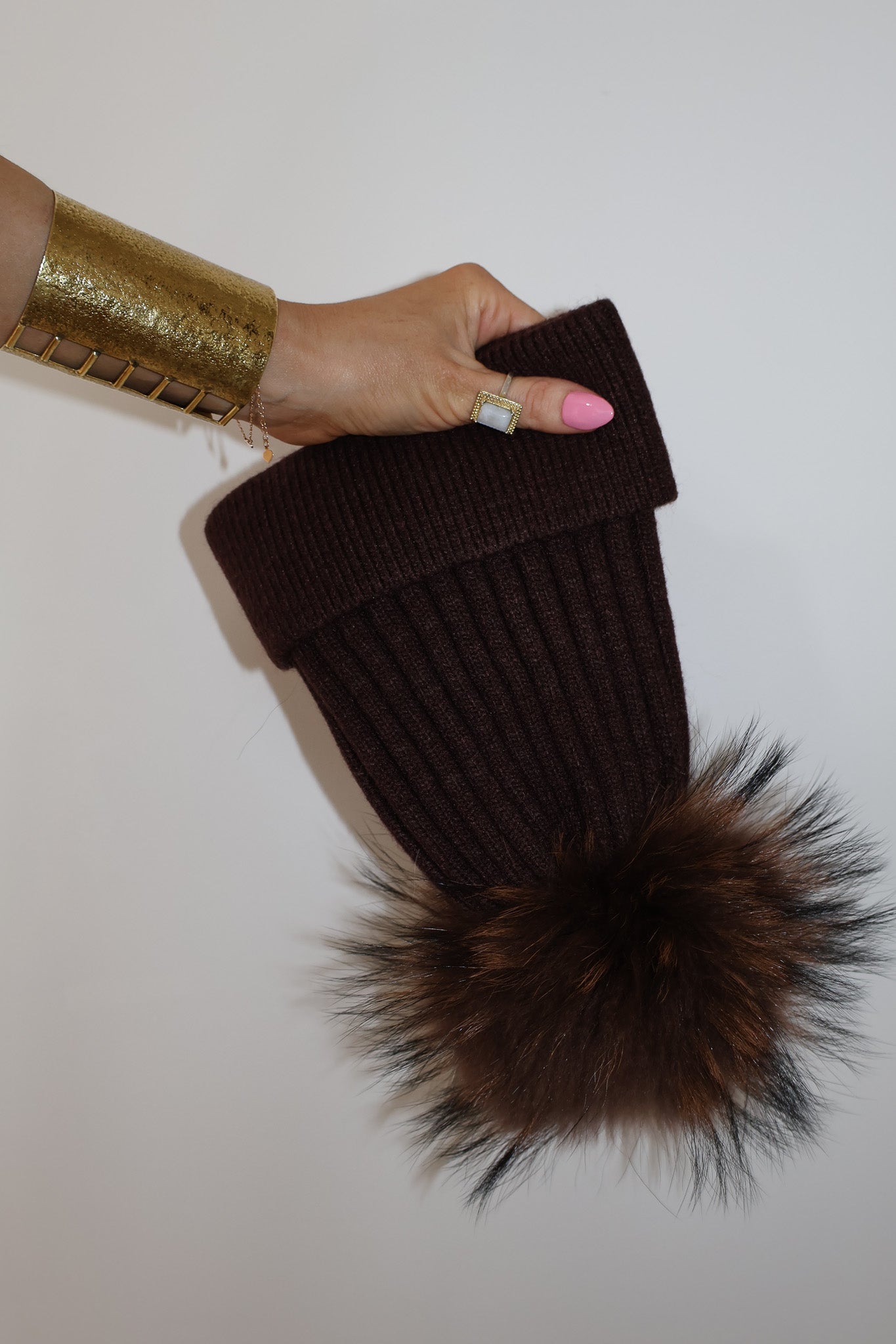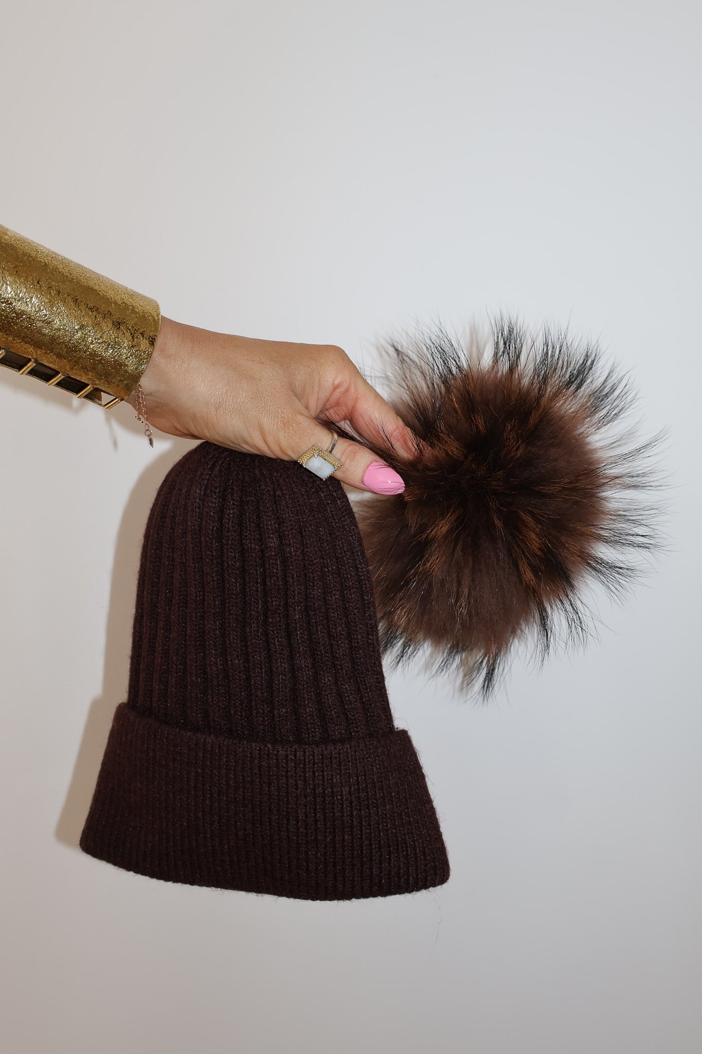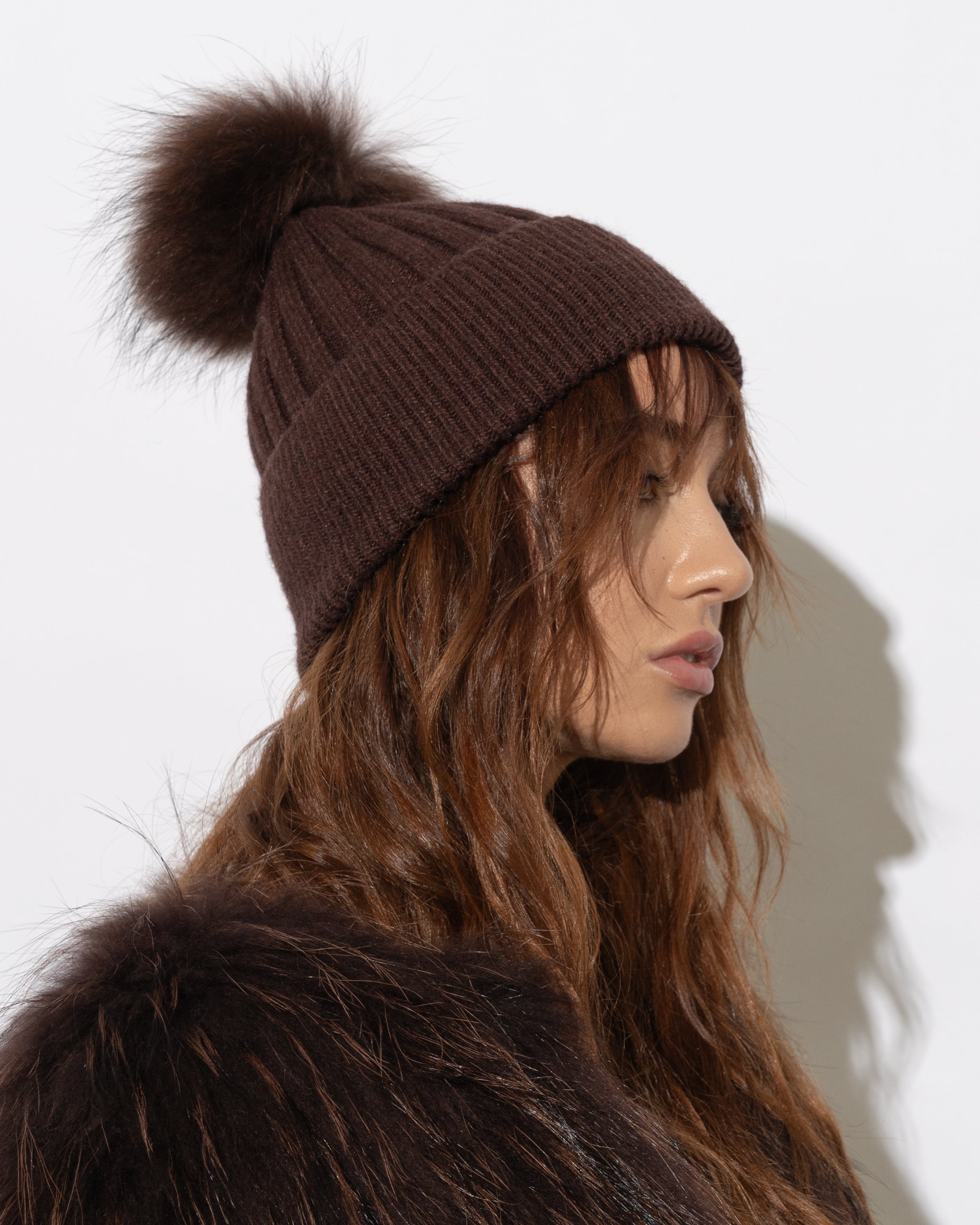 Après Angora Beanie Hat With Pom Pom in Cocoa