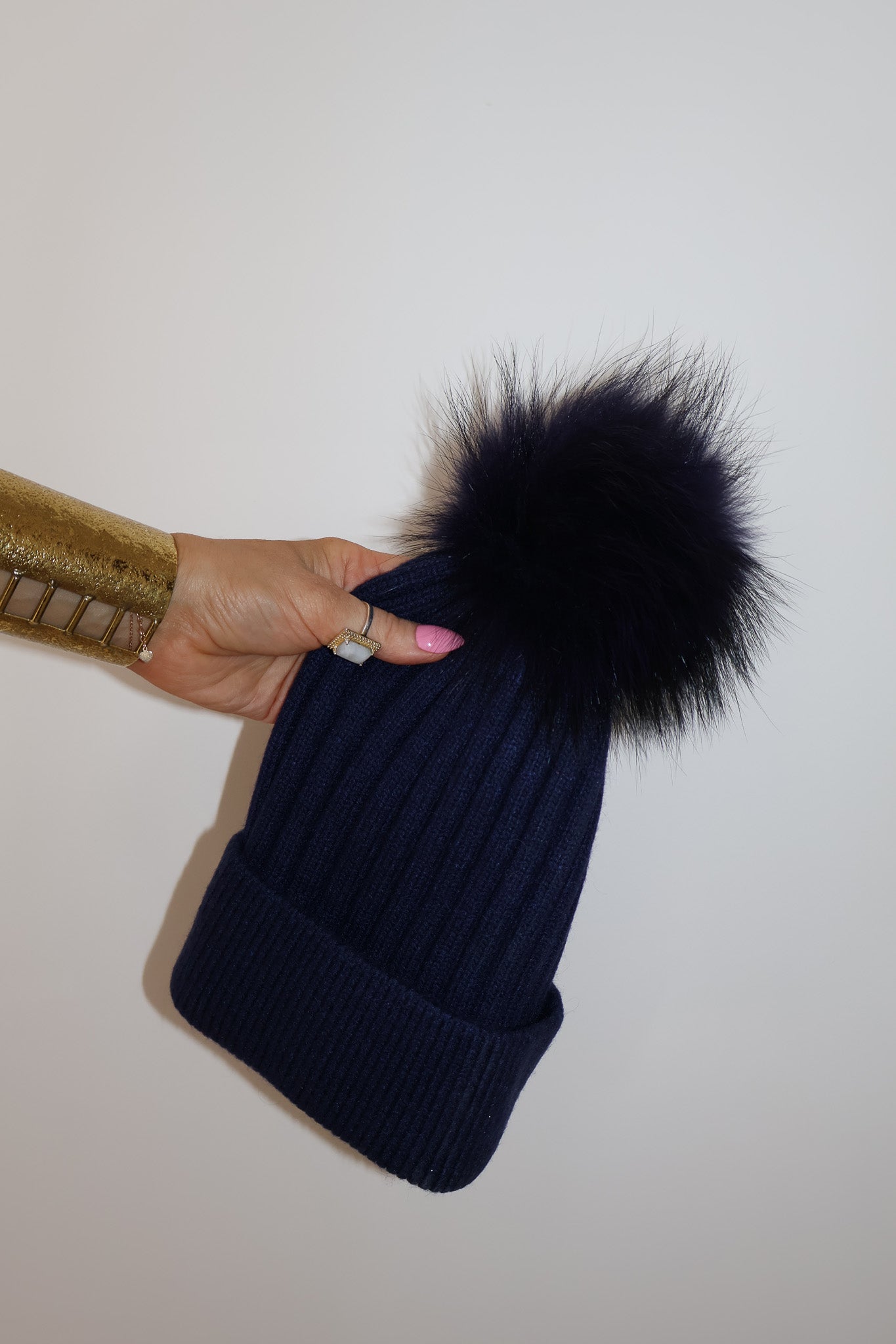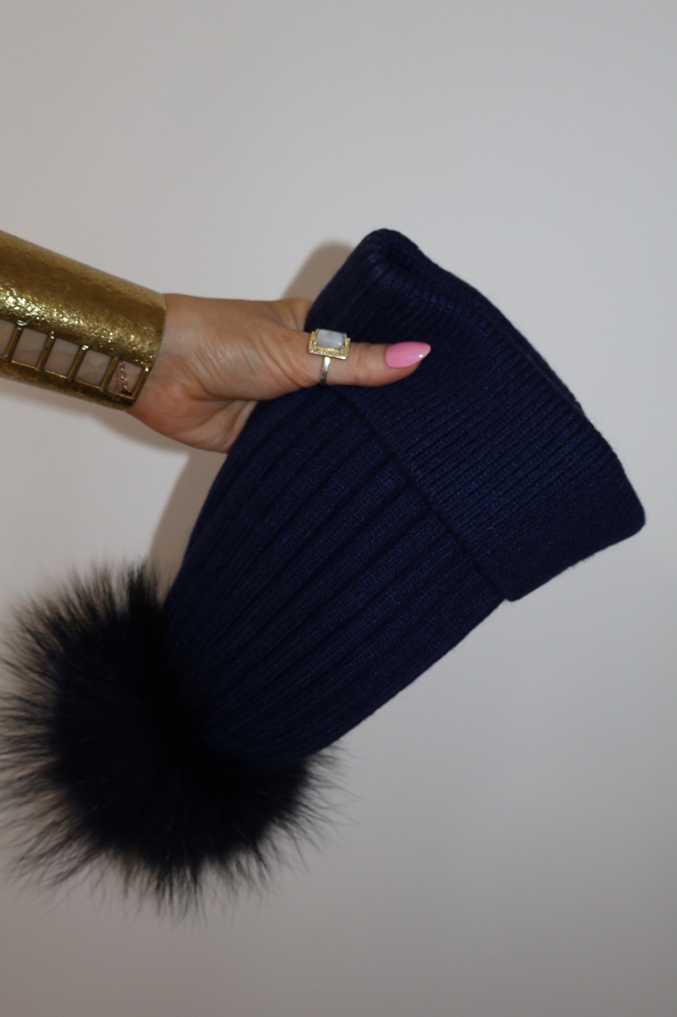 Après Angora Cashmere Pom Pom Beanie Midnight