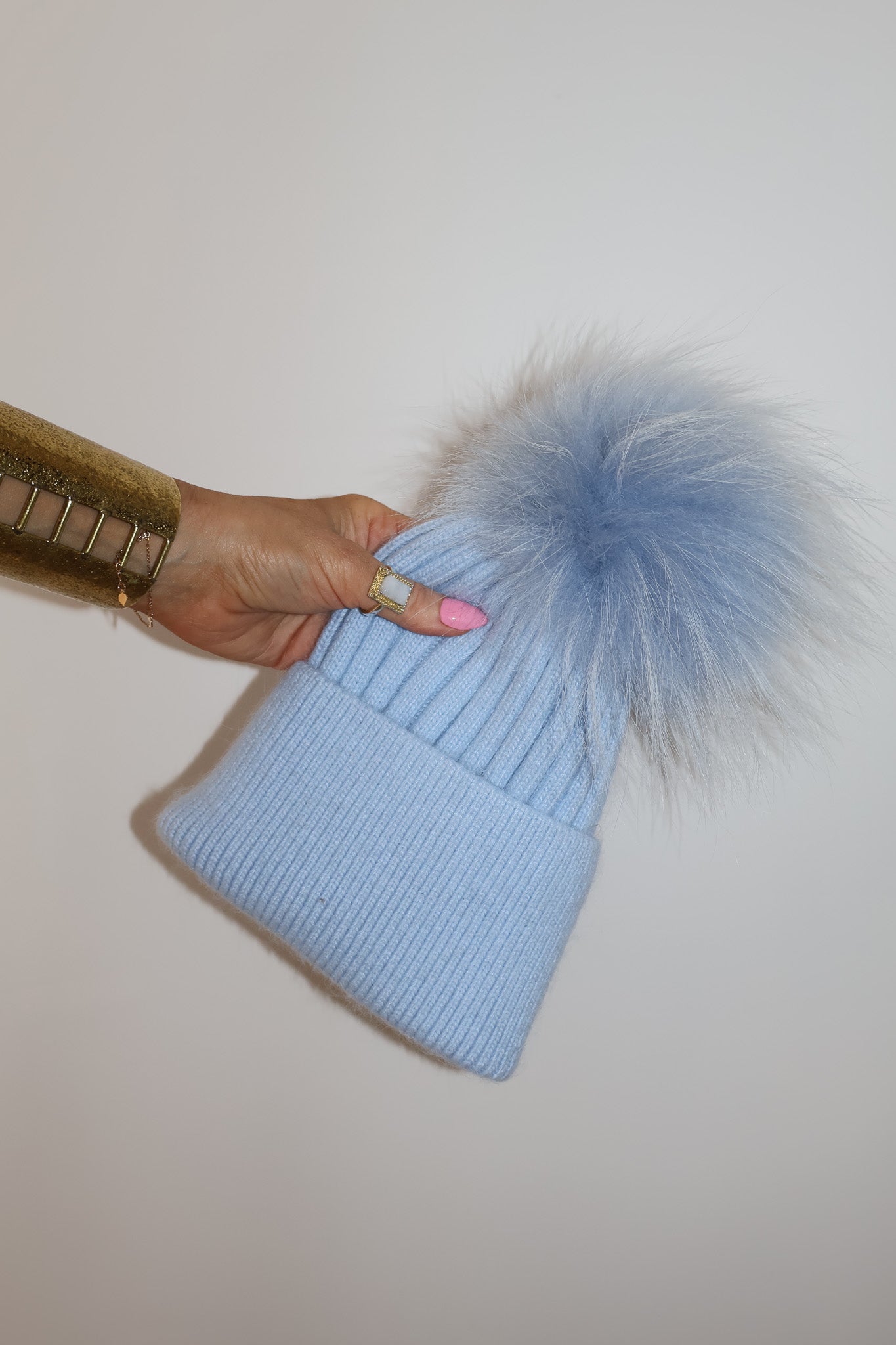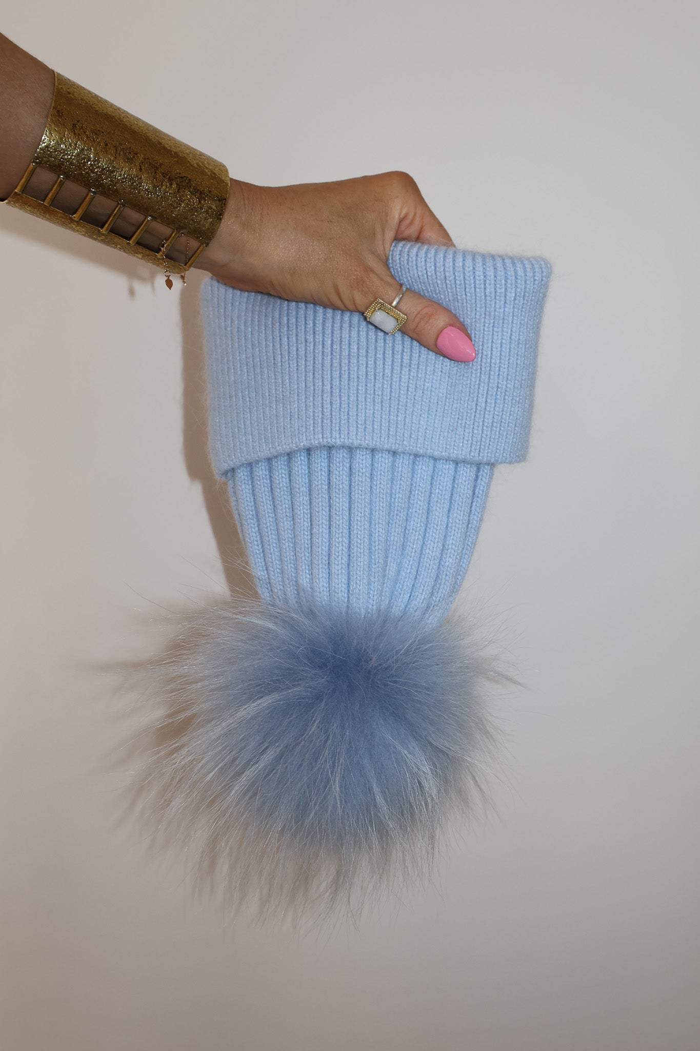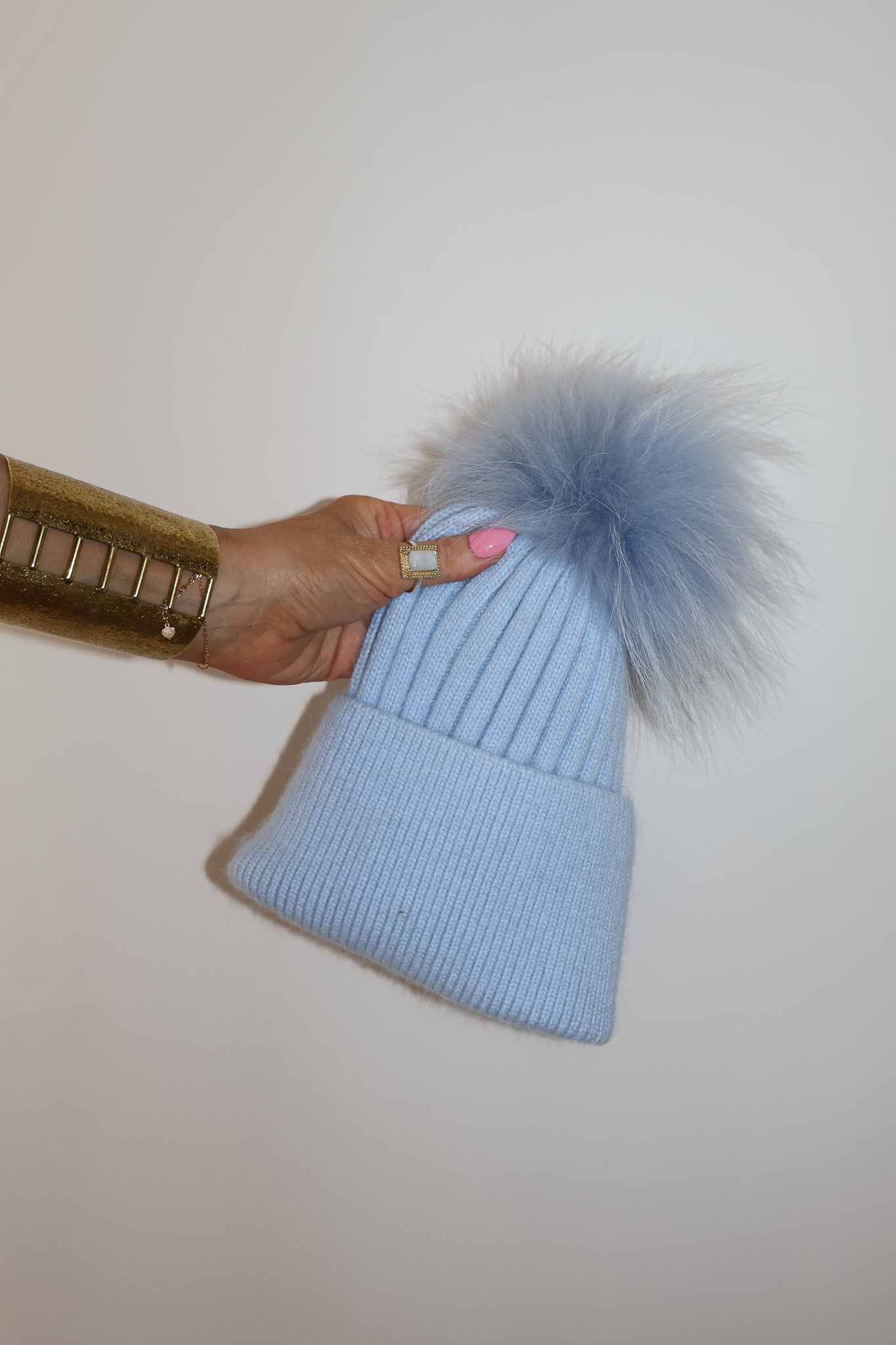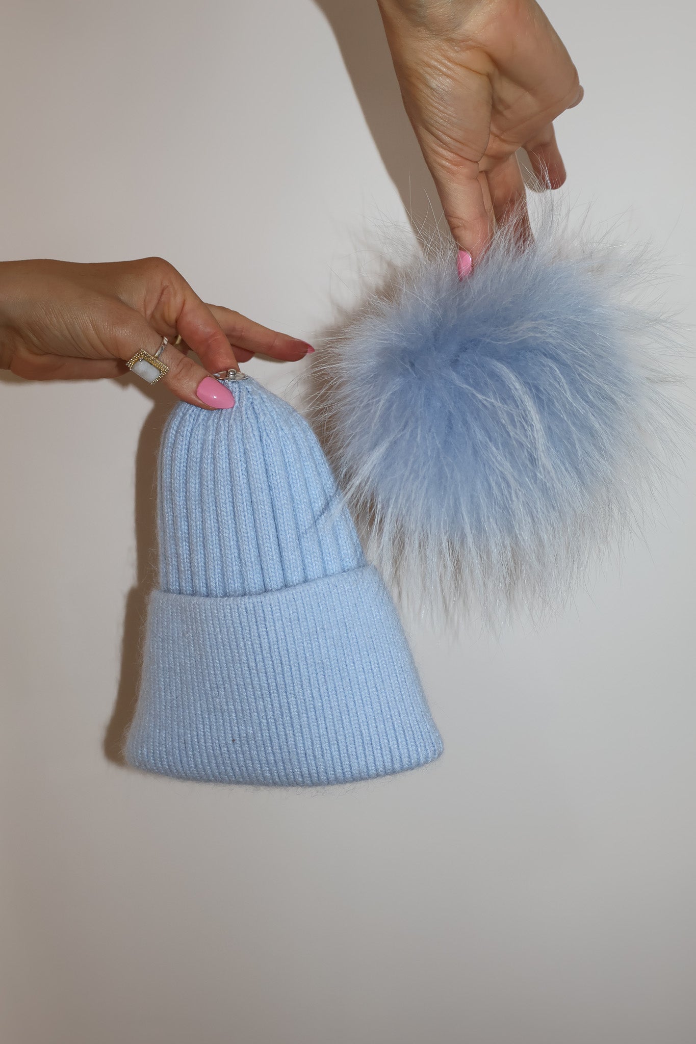 Our gorgeous Angora Beanie With Fur Pom Pom in Azure are a must-have winter accessory for those needing a little extra warmth in the cooler weather. The fur pom pom is detachable, so this Beanie With Fur Pom Pom can be worn with or without the pom pom - although we always recommend with!