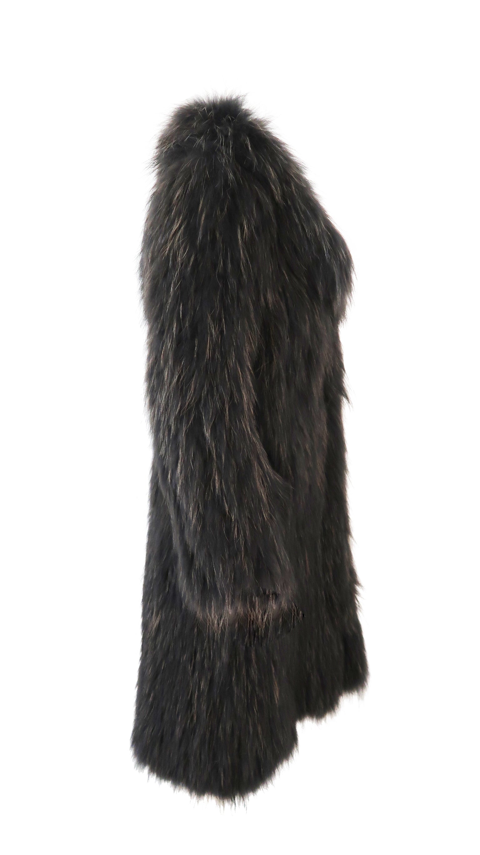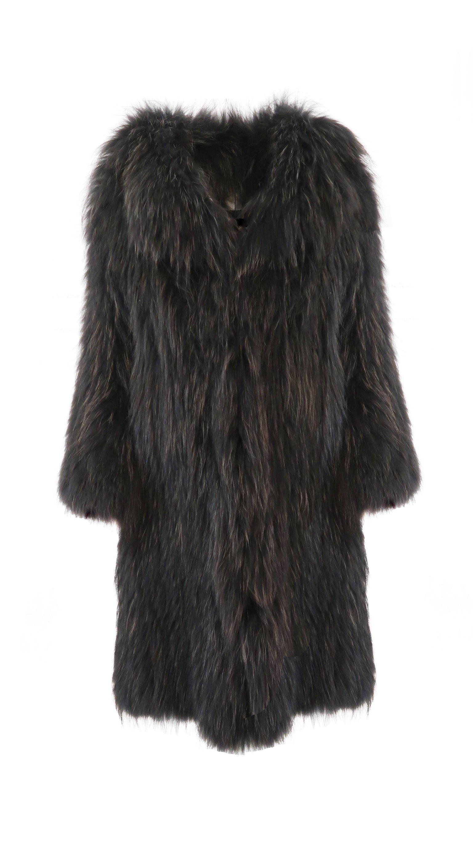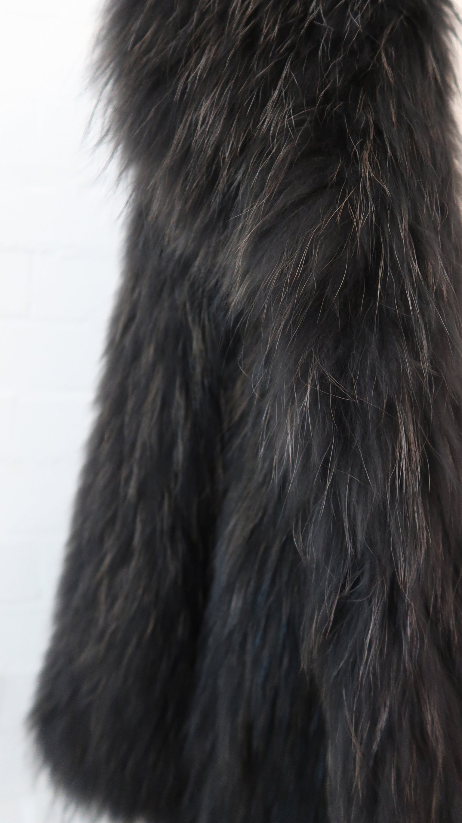 This incredibly lightweight longline fur coat is knitted by hand using luxurious 100% raccoon fur outer & lining. Bold overturned collar and wide lapels make an elegant statement while draping effortlessly over your frame, the unstructured design of the Aster Long Fur Coat contours your silhouette making it extremely easy to wear.