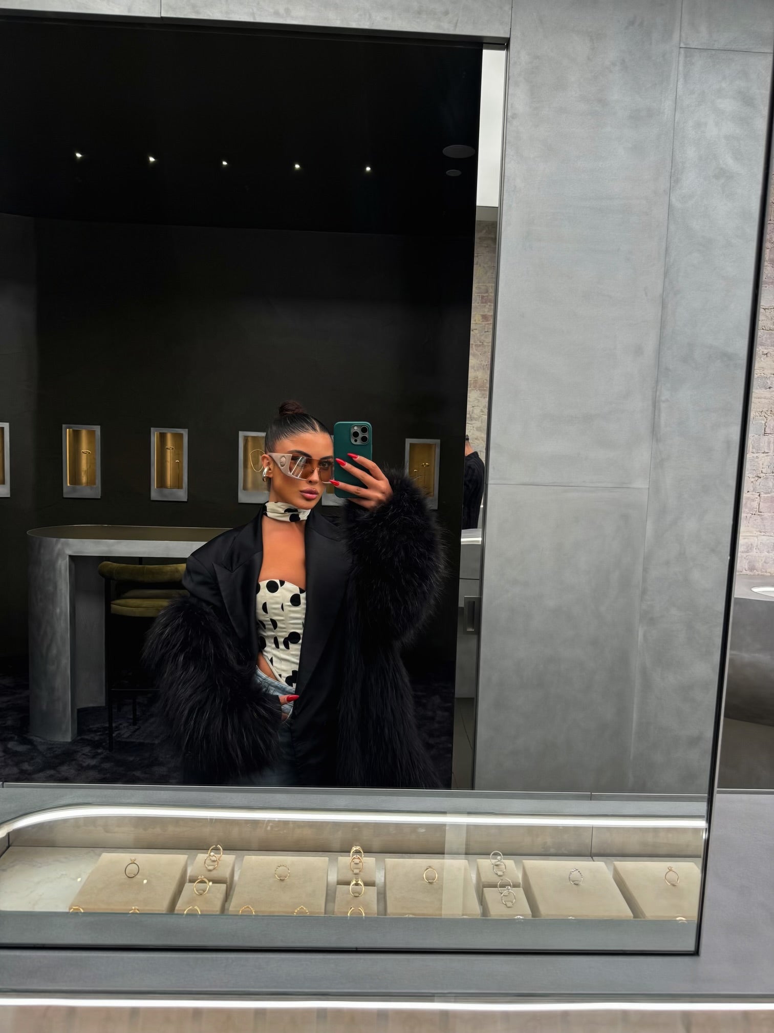 This gorgeous fur jacket is more hard-wearing than it looks, resilient against a little spillage