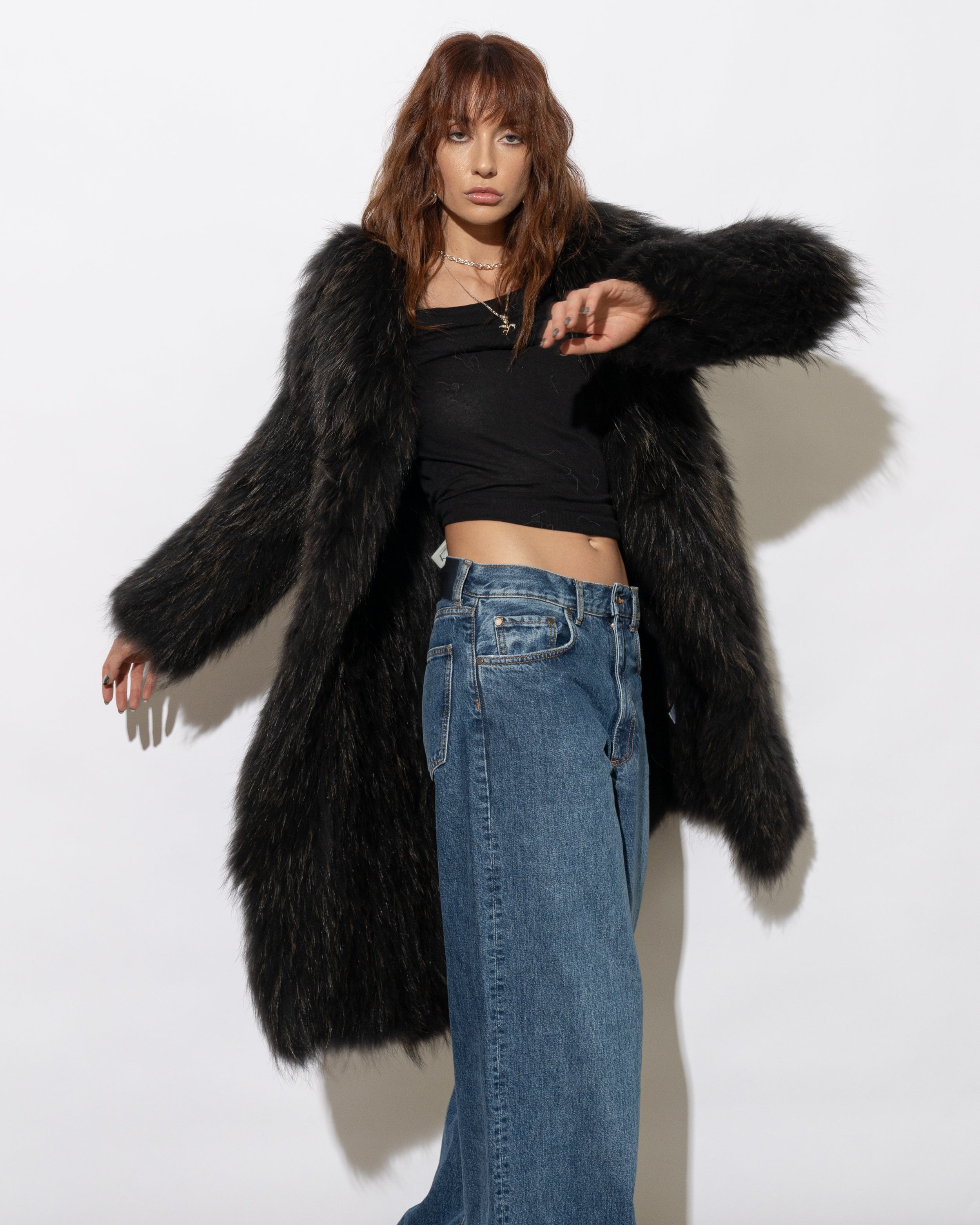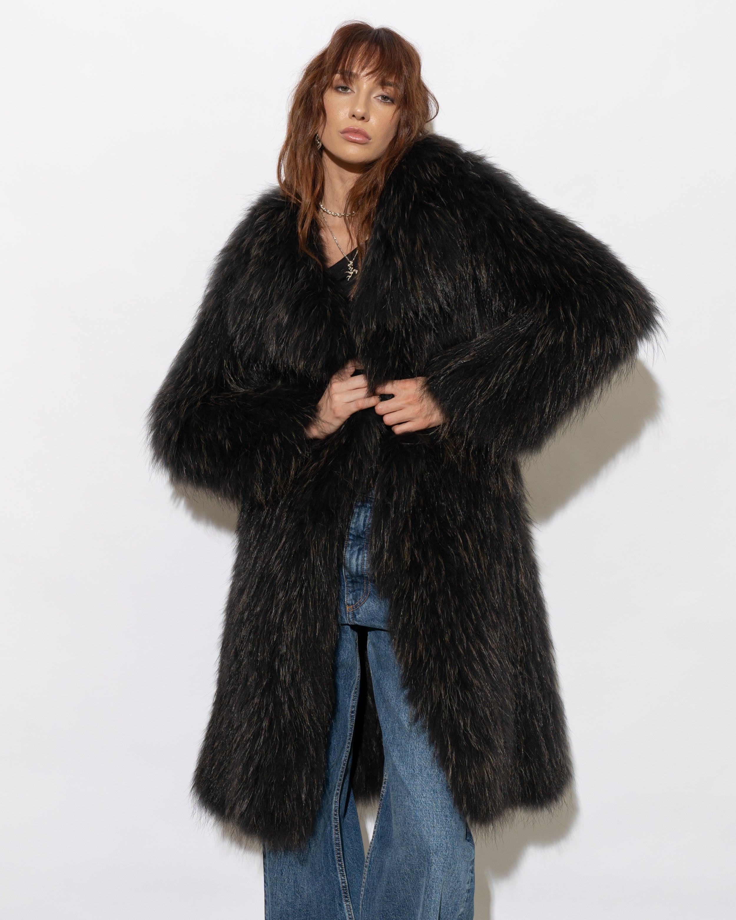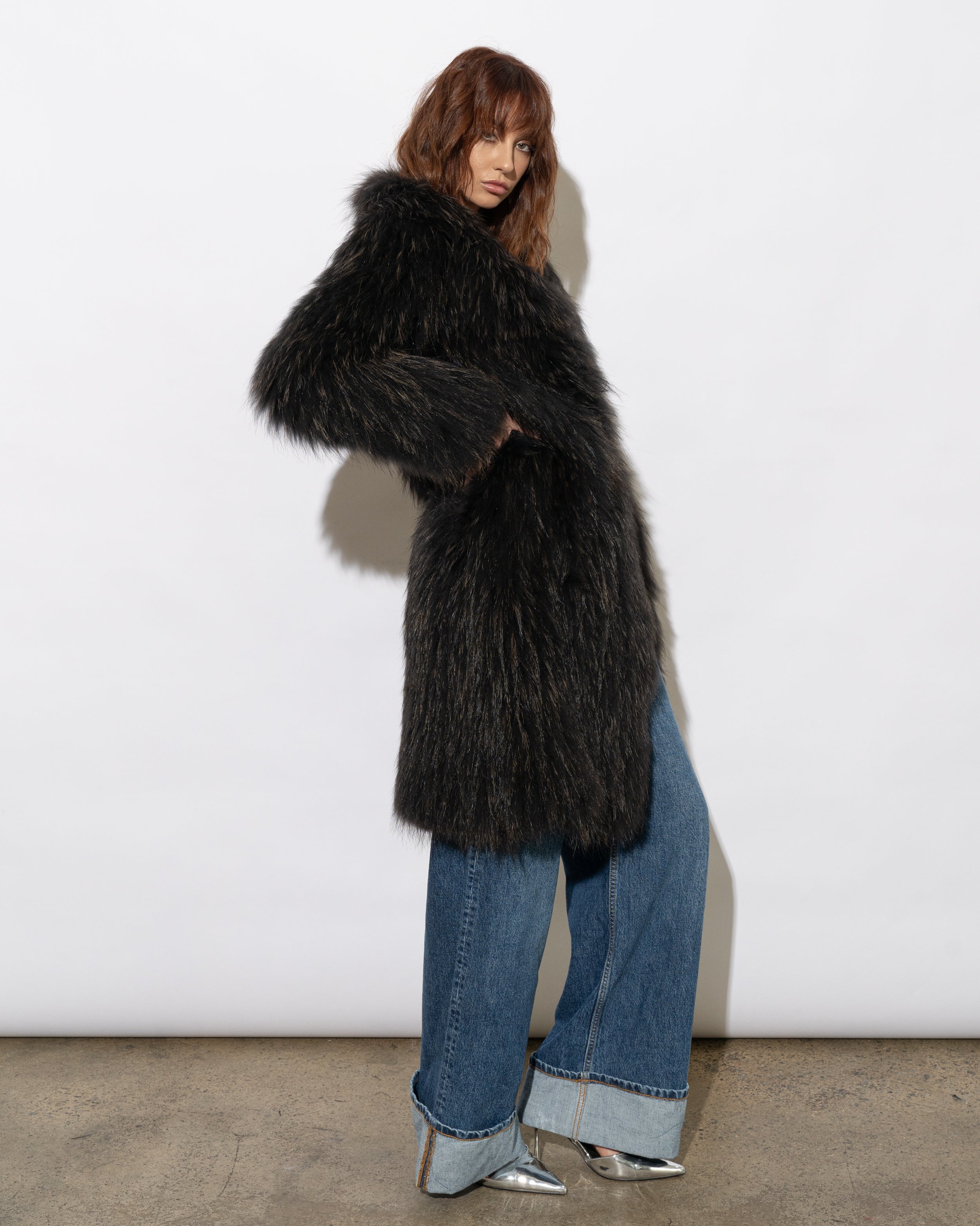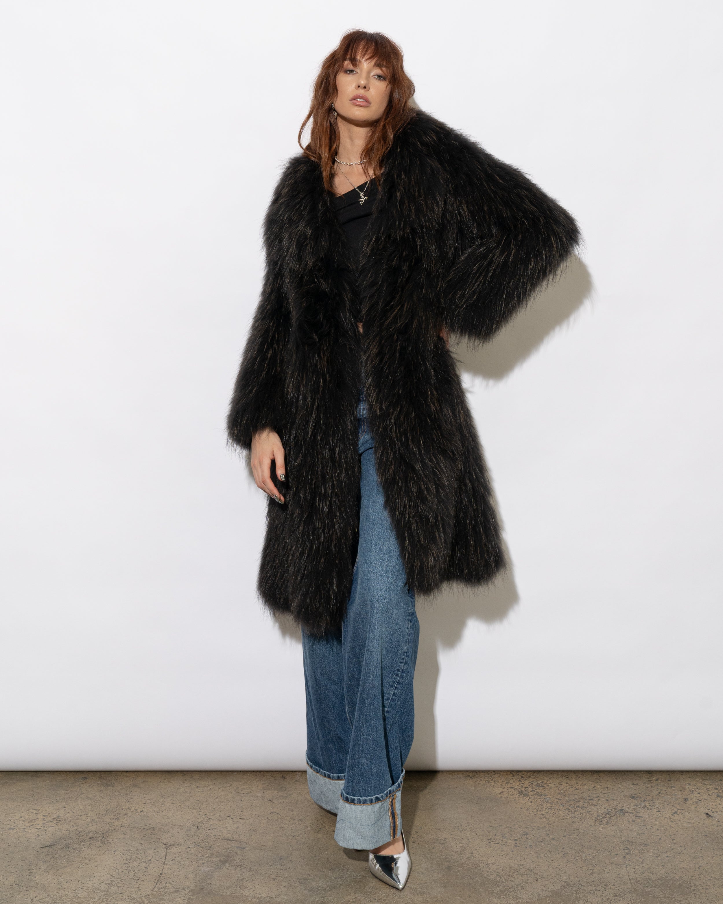 Add a decadent dose of va-va-voom in the Aster Long Fur Coat in sultry Onyx.