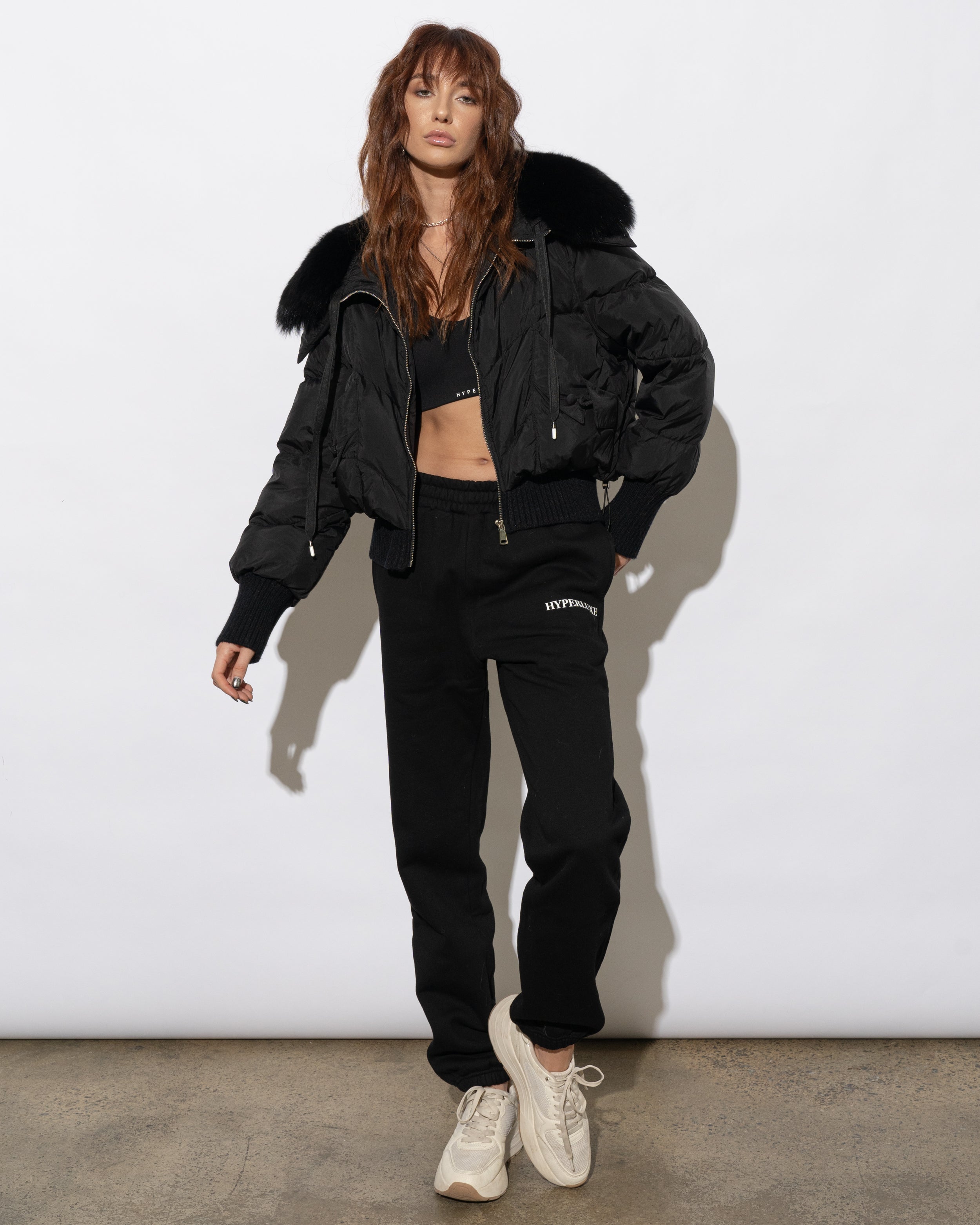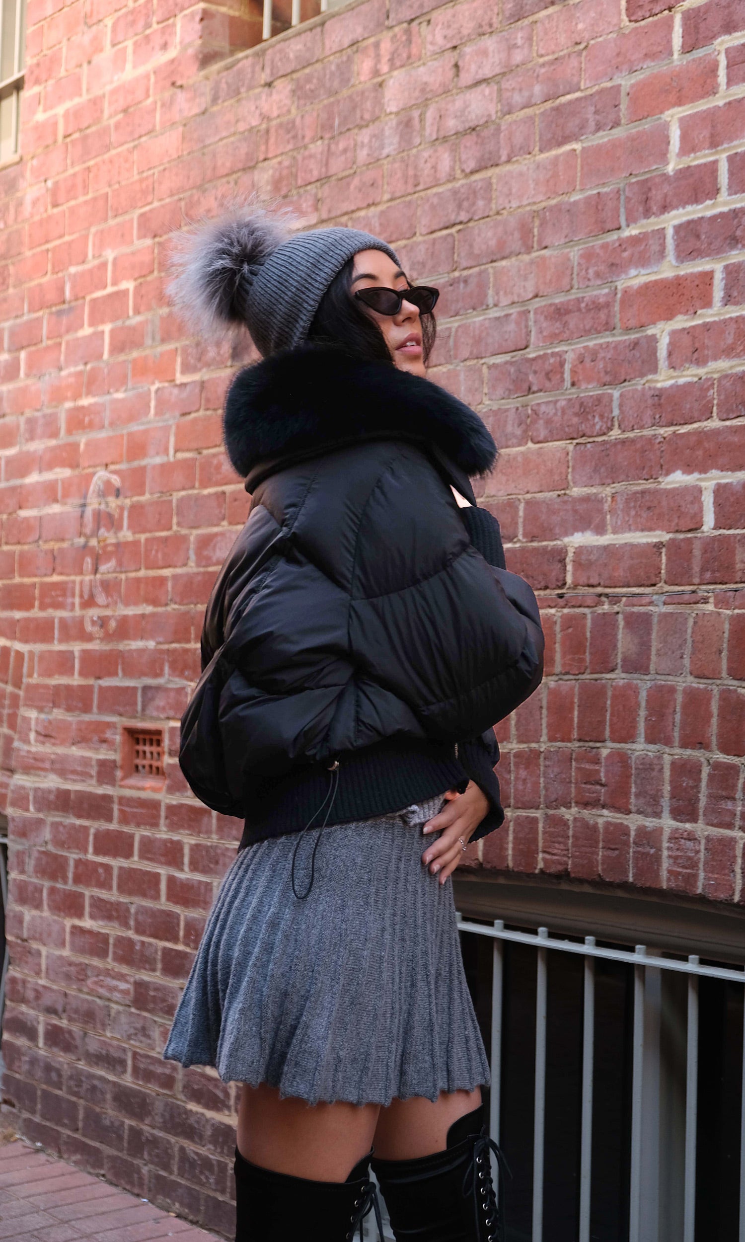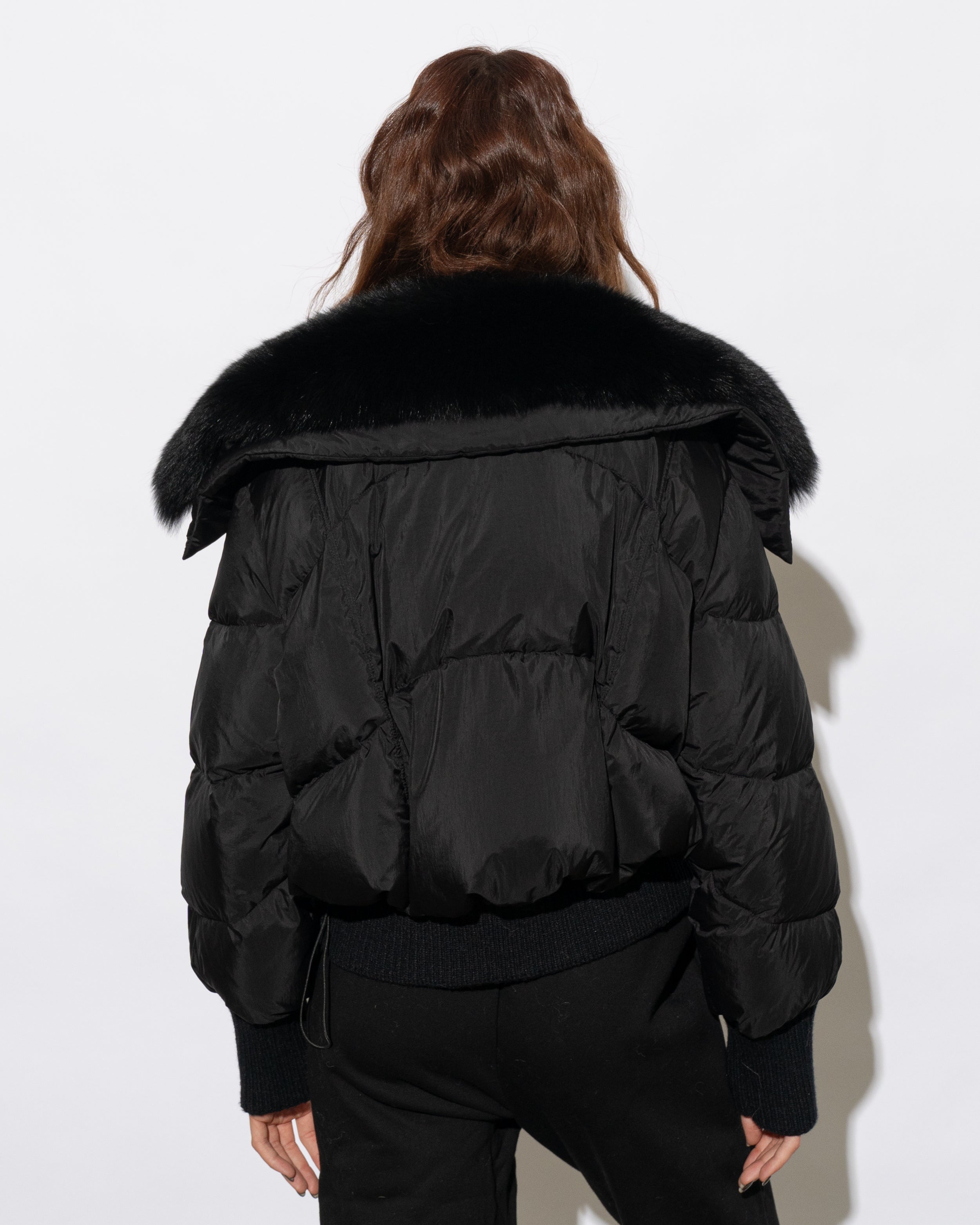 Conquer the cold with our Black Puffer jacket! The perfect chameleon piece for your transpersonal wardrobe, this luxurious leisure jacket boasts a daring, detachable fox fur collar and encapsulating goose down inner for ultimate warmth and effortless style. Don't settle for ordinary - embrace the adventure and immerse yourself in the cloud-like cocoon of our Black Puffer!
