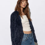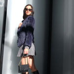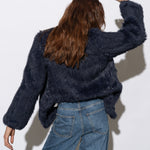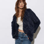 Dare to ride the style waves with the Elliott Biker Jacket in Navy. Its comfy fit, soft lightweight texture and knitted rabbit fur lining make it as easy to wear and just as easy on the eye. Pairing well for all occasions, the exaggerated lapels and cropped curved back hemline creates an effortless addition to style with your existing wardrobe staples.
