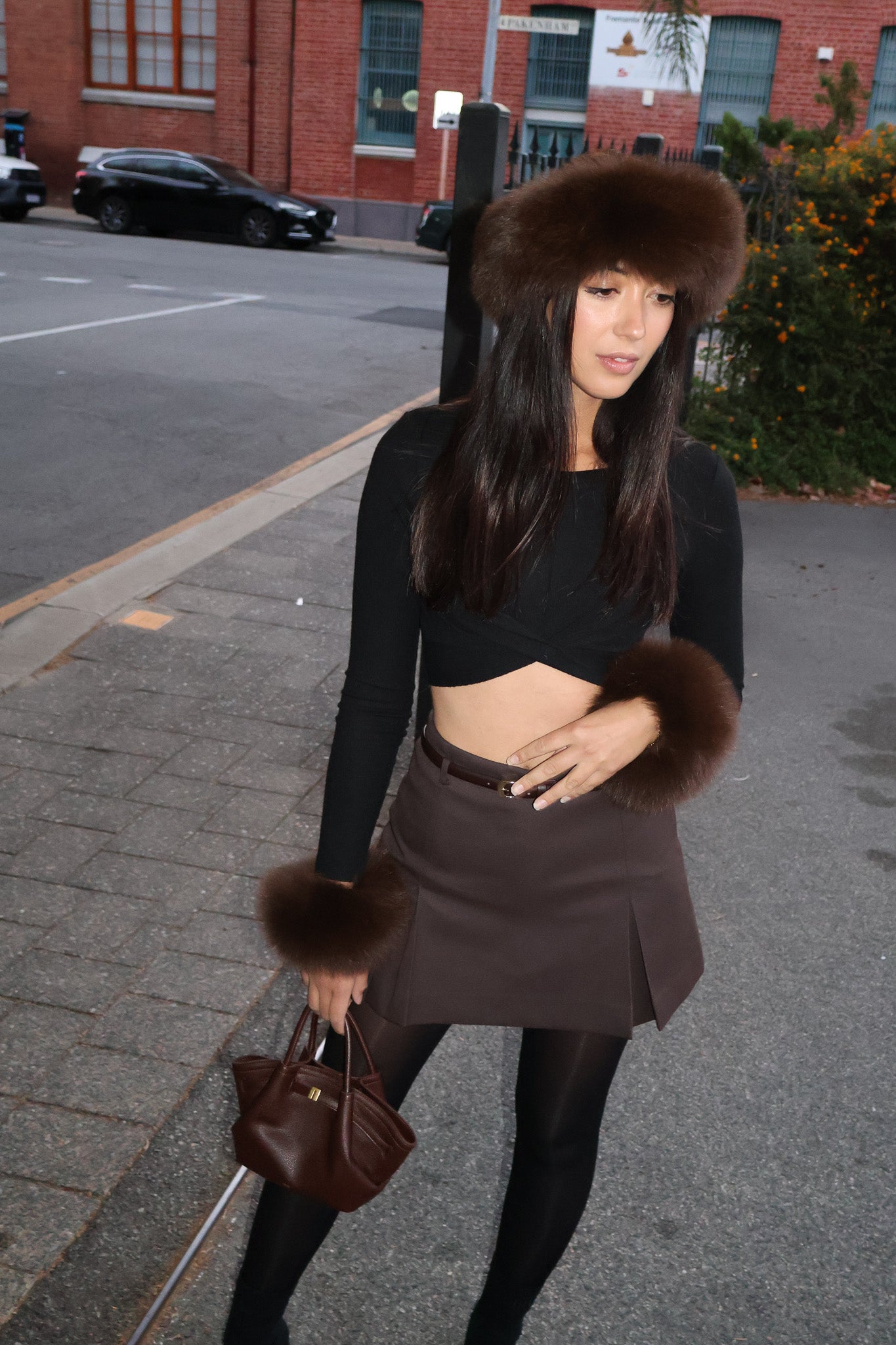 Elevate your wrist game with these audacious fluffy fur cuffs. The ultimate statement accessory for those who refuse to blend in. Crafted from sumptuous faux fur in our signature Cocoa colourway, these snap-band cuffs slip on effortlessly and layer fearlessly over sleeves, jackets, or bare skin. Whether you're channeling editorial glamour or adding unexpected texture to minimalist styling, these cuffs deliver instant luxury and undeniable attitude. Bold, tactile, and unapologetically luxe.