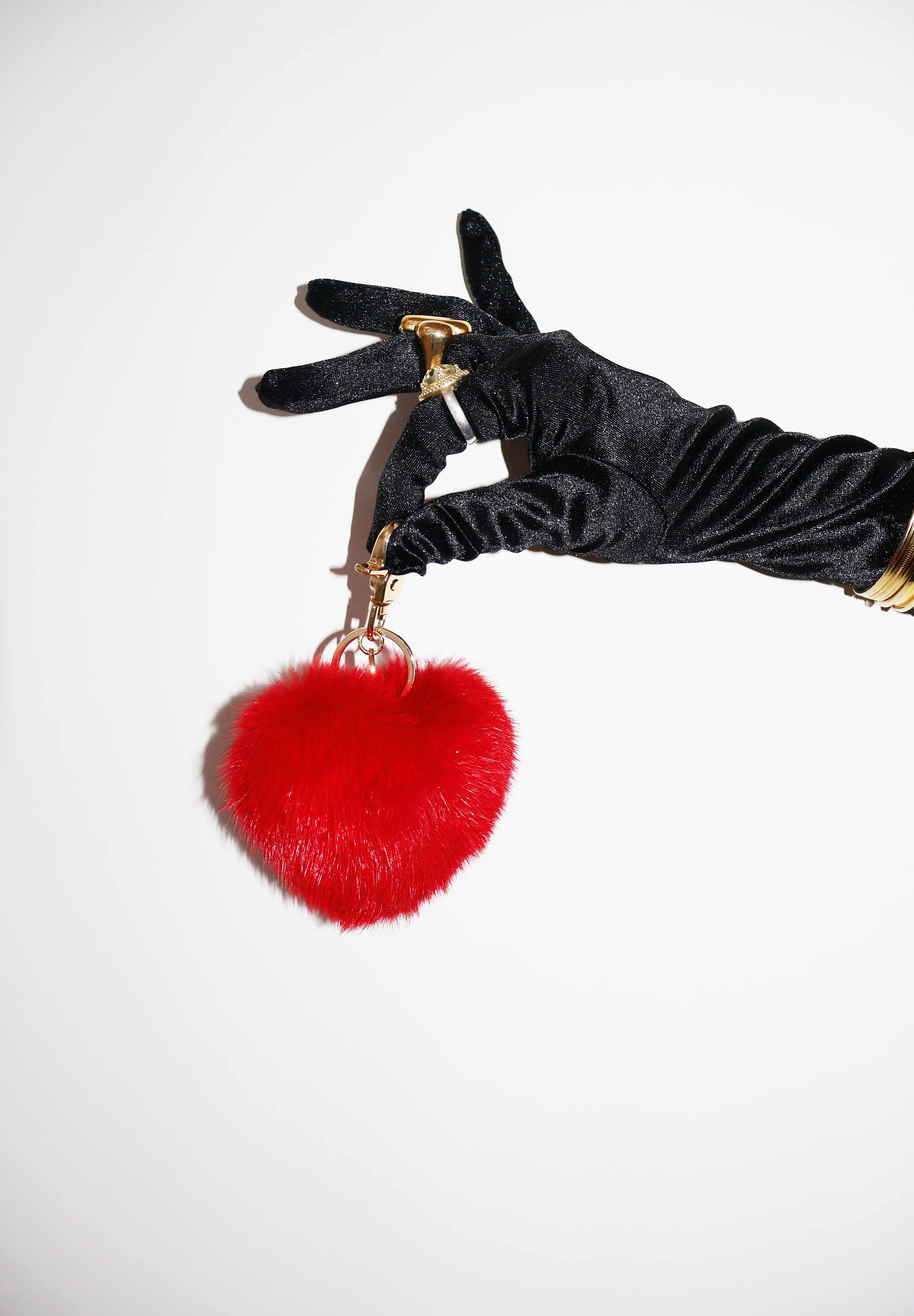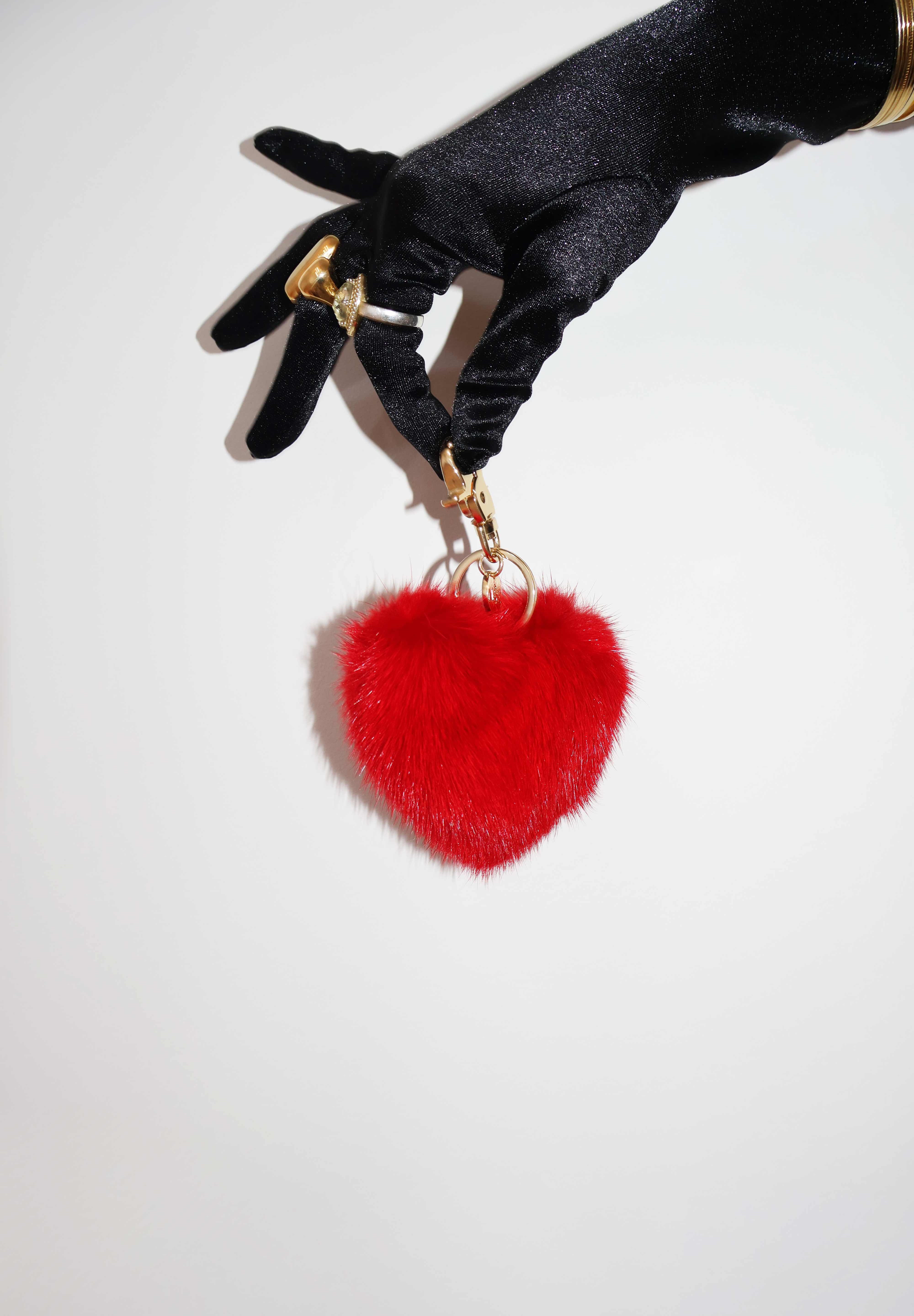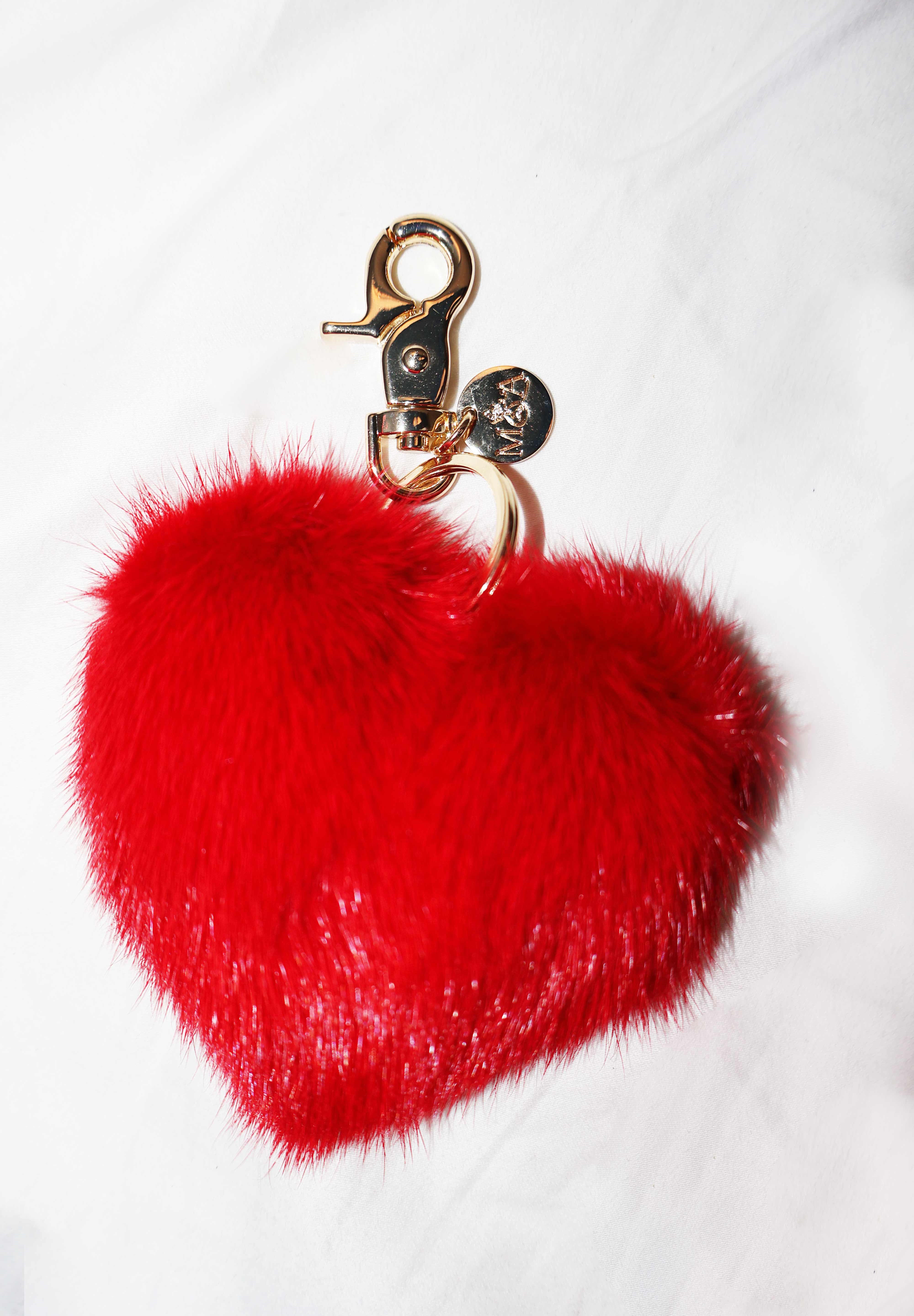 Wear your heart on your sleeve.. or at least on your keys! Dare to accessorise with our fun Fluffy Heart Keychain in Maraschino. Made from sumptuous fluffy fur and adorned with statement M&A branded gold hardware, perfect for adding a touch of fab to your keys or bag. You'll never lose your keys again!