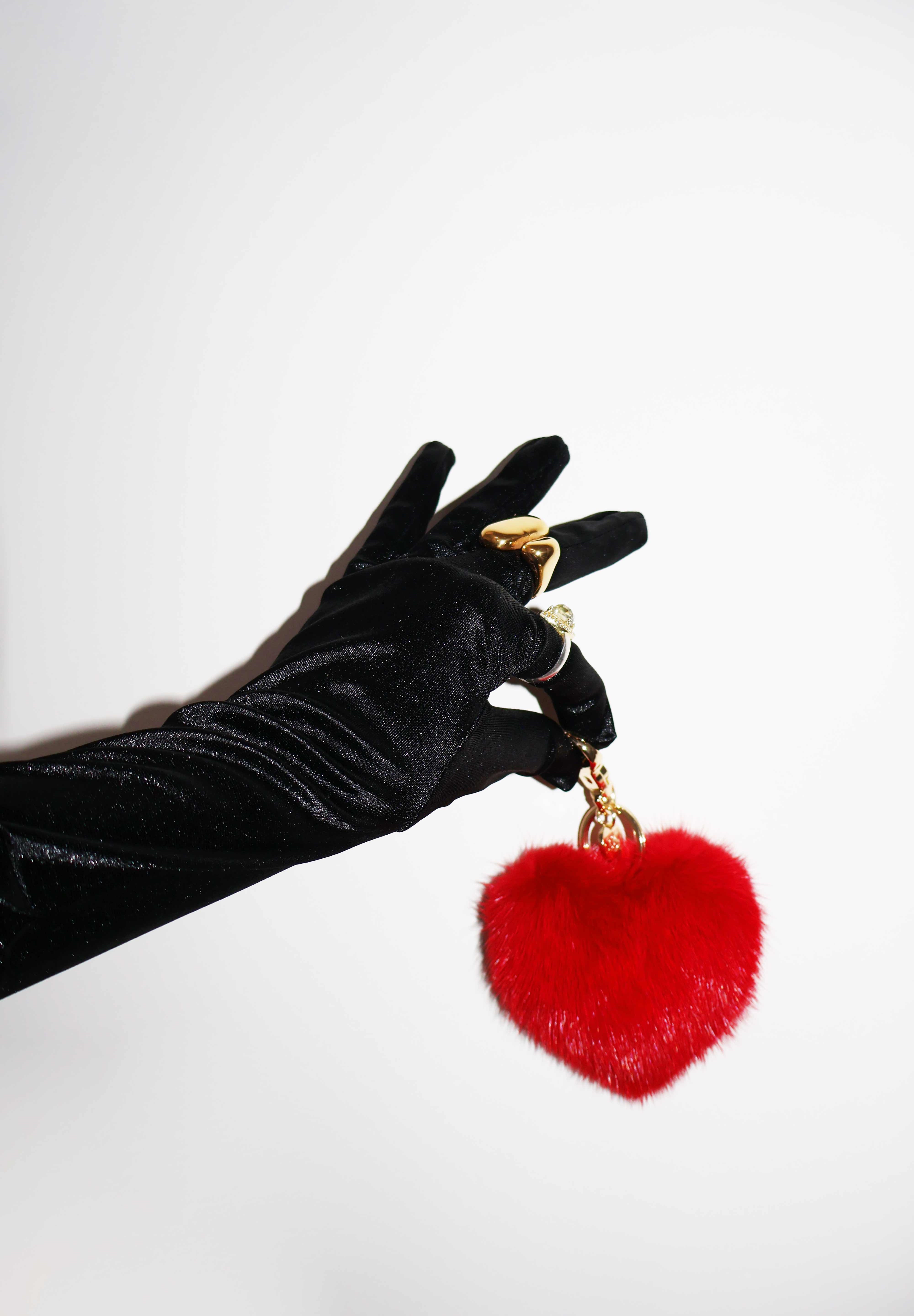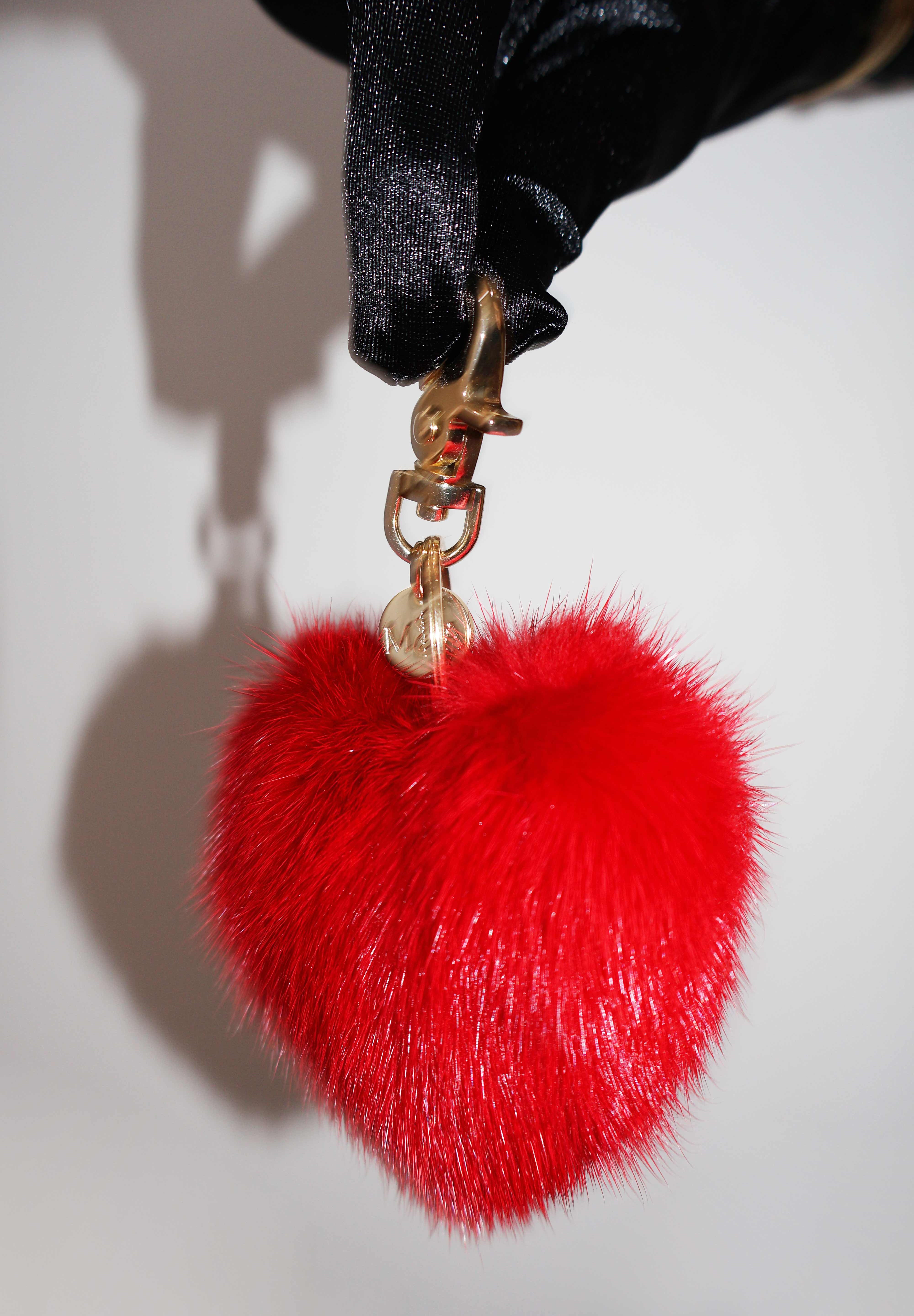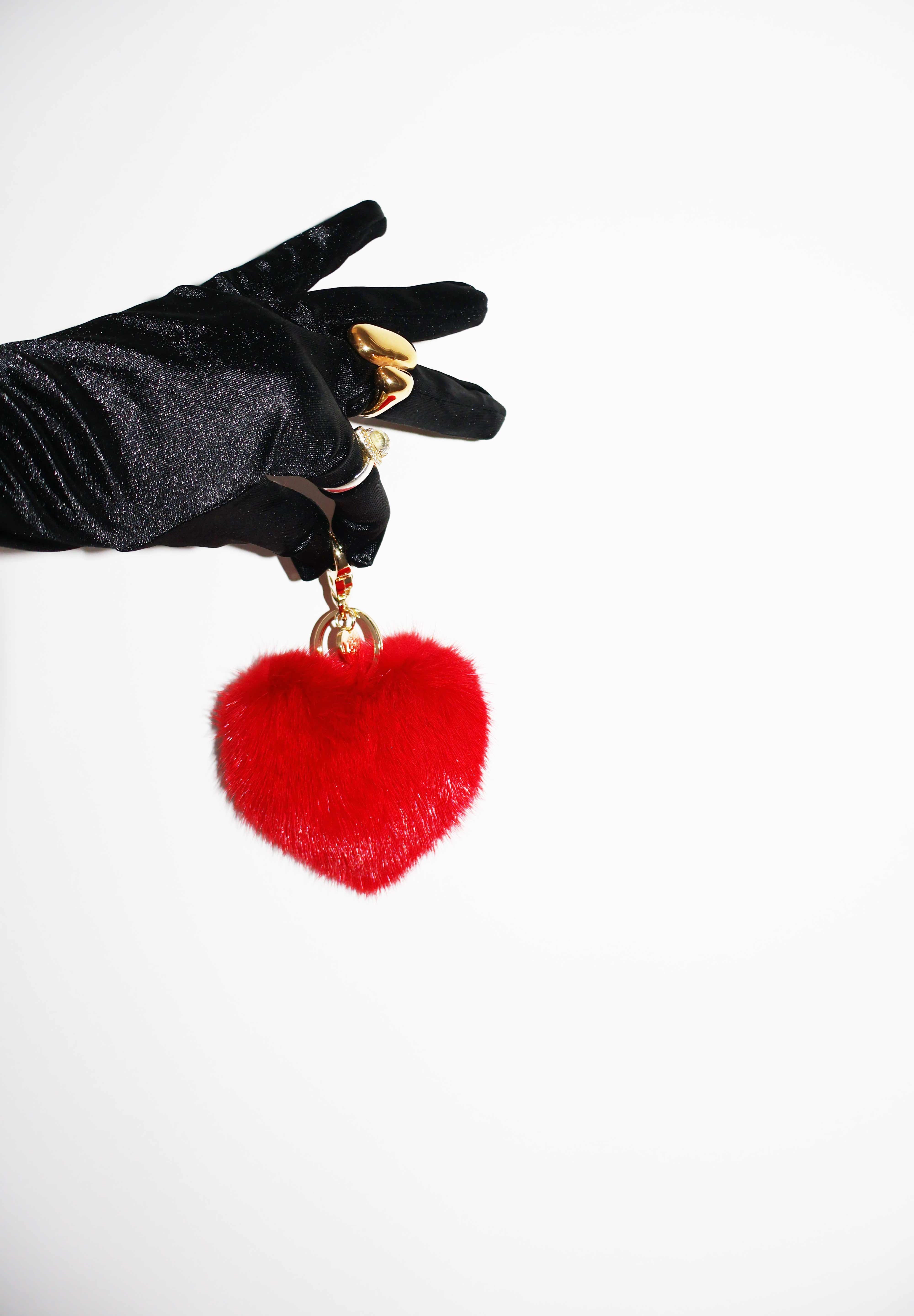 Wear your heart on your sleeve.. or at least on your keys! Dare to accessorise with our fun Fluffy Heart Keychain in Maraschino. Made from sumptuous fluffy fur and adorned with statement M&A branded gold hardware, perfect for adding a touch of fab to your keys or bag. You'll never lose your keys again!