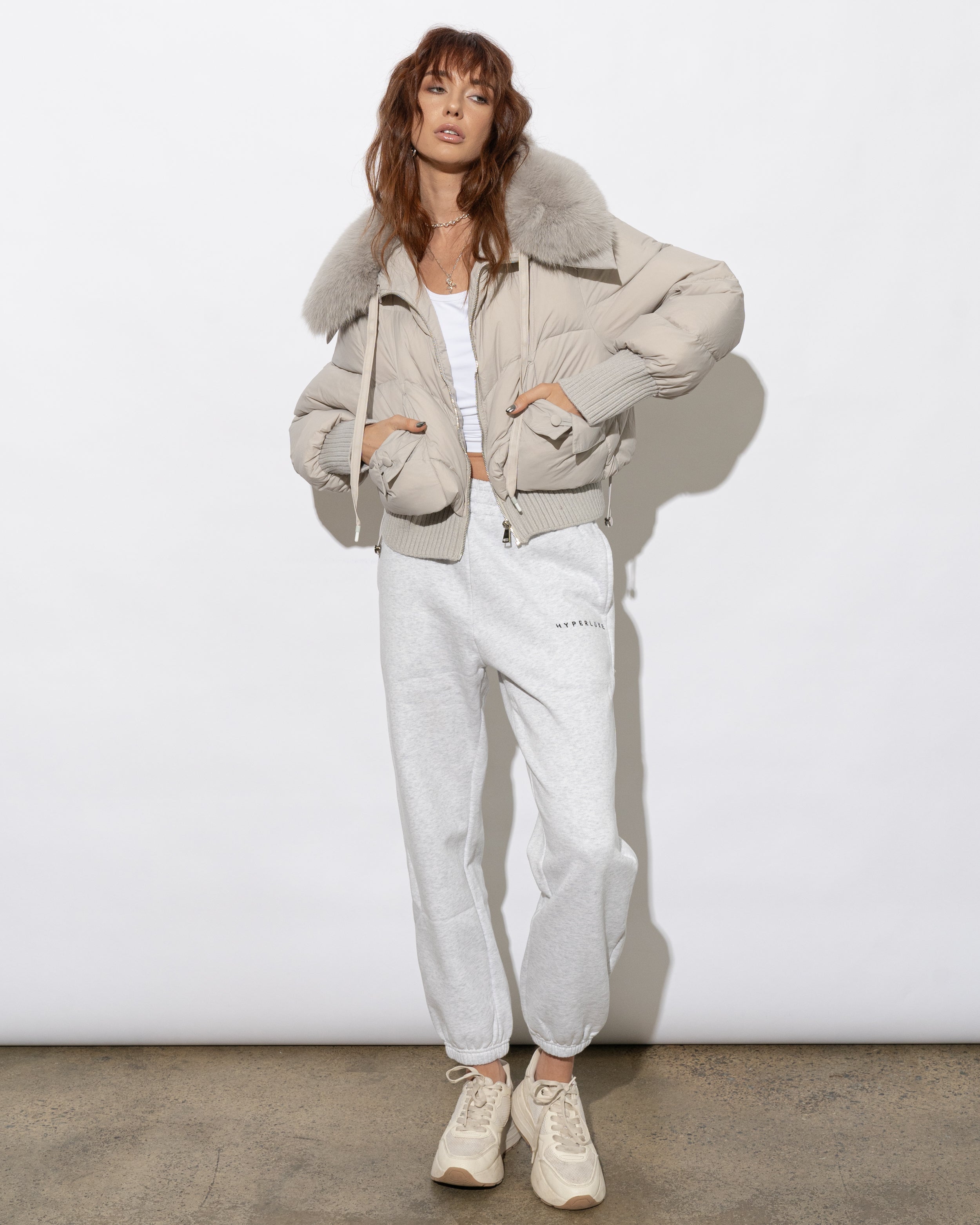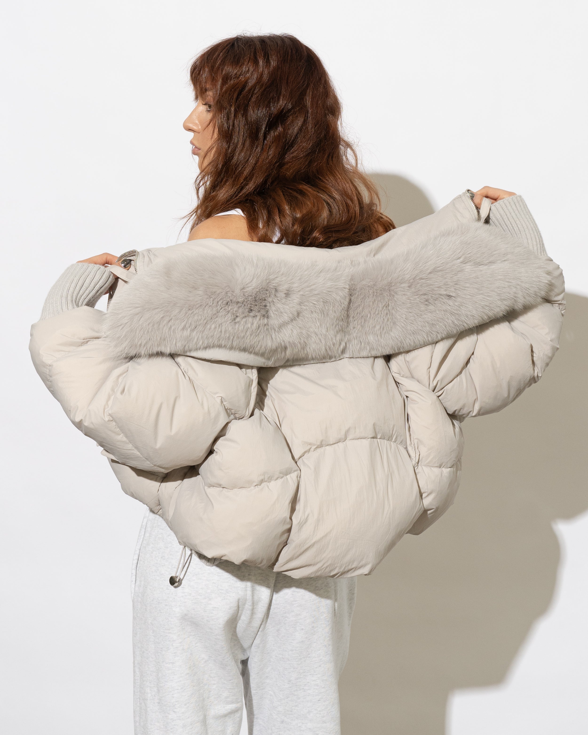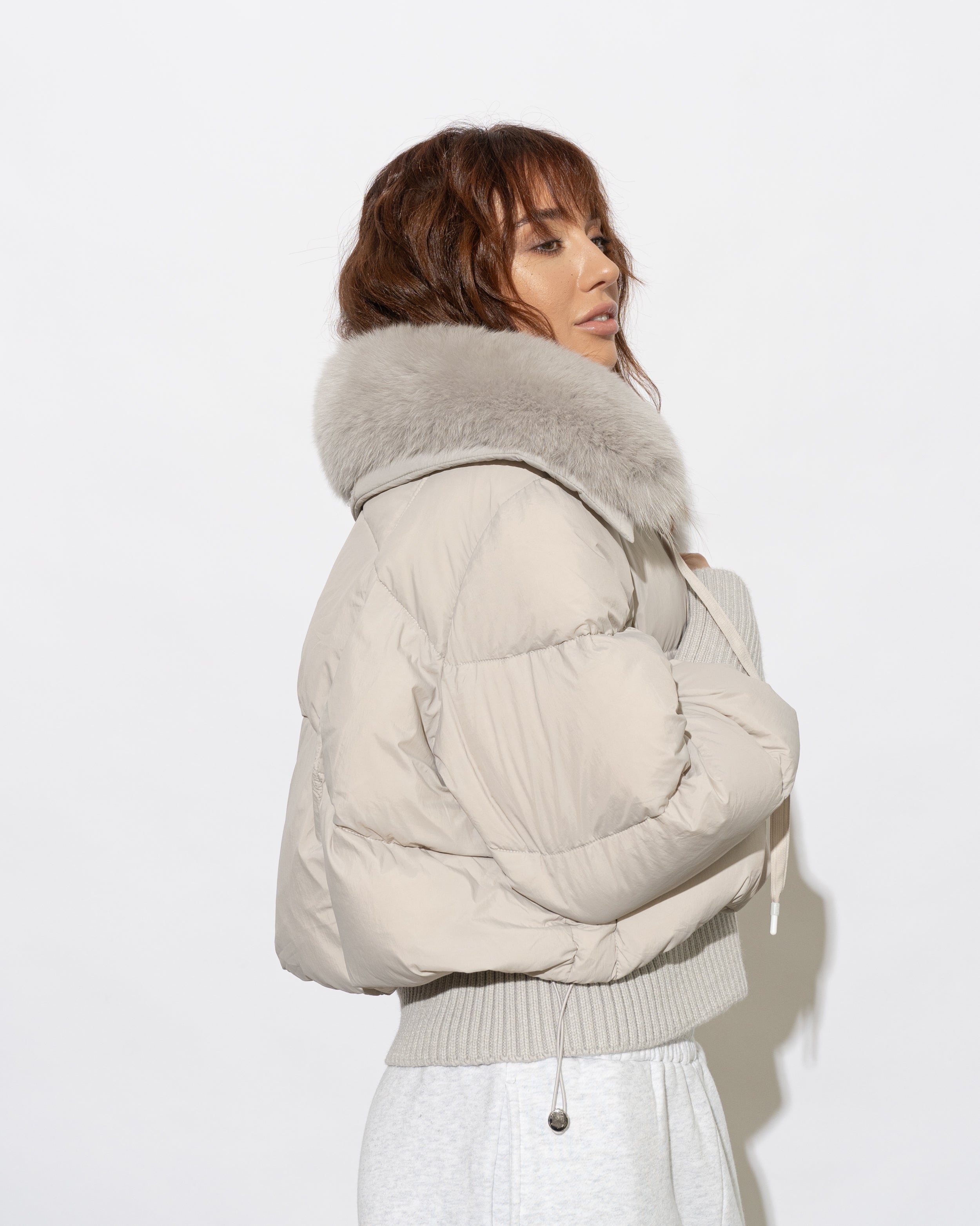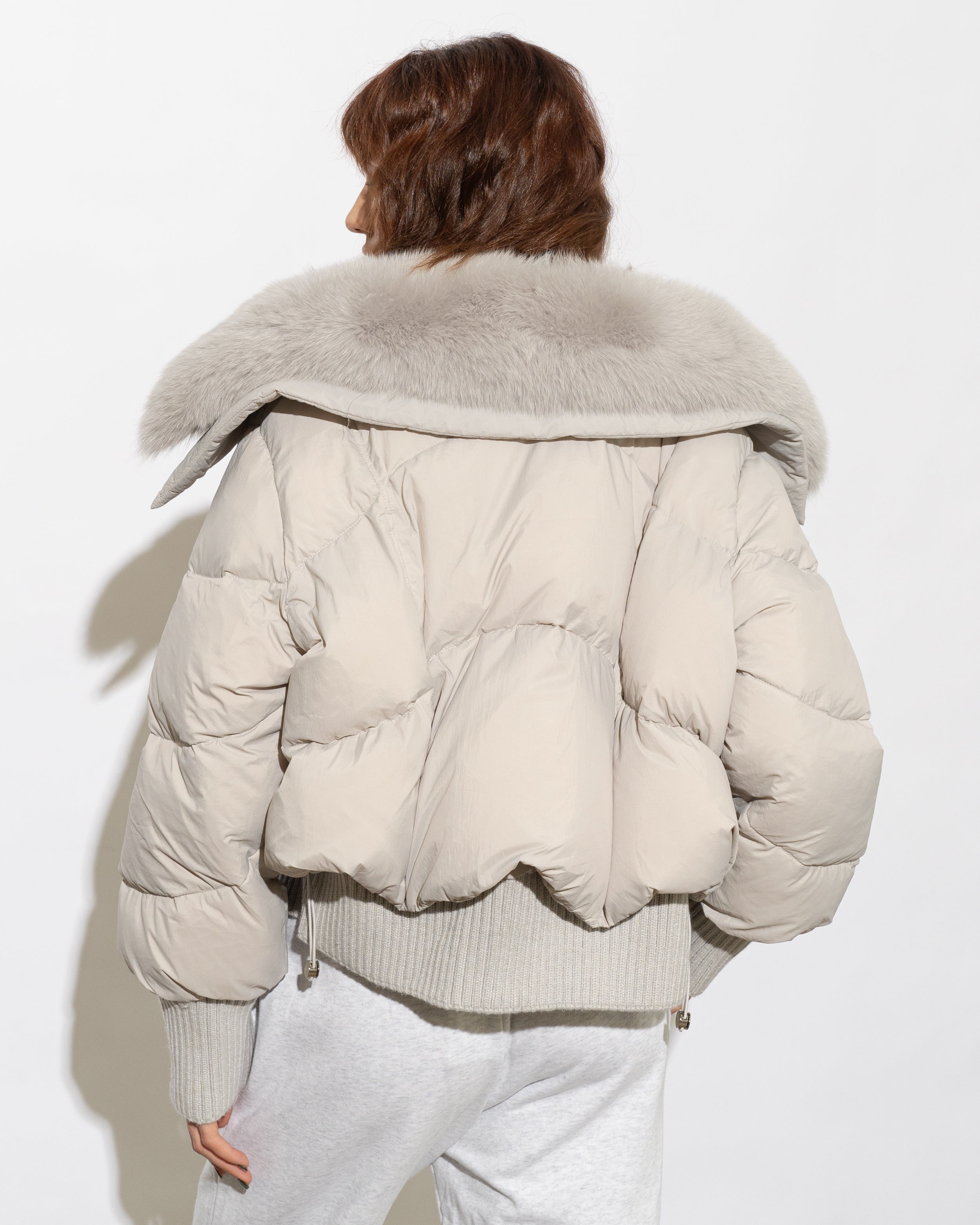 Conquer the cold with our Billie Puffer jacket! The perfect chameleon piece for your transpersonal wardrobe, this luxurious leisure jacket boasts a daring, detachable fox fur collar and encapsulating goose down inner for ultimate warmth and effortless style. Don't settle for ordinary - embrace the adventure and immerse yourself in the cloud-like cocoon of our Billie Puffer!