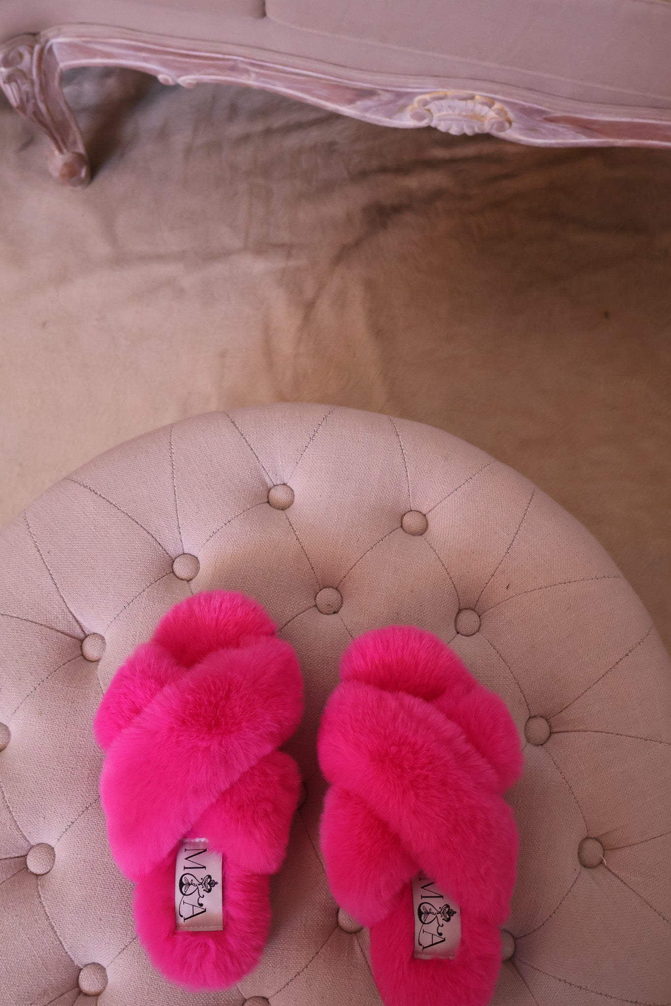 Say goodbye to boring slippers and hello to hot pink happiness! These bold, hot pink fluffy slippers are the ultimate statement piece for your feet. With irresistibly soft criss-cross straps that hug your toes like a cozy cloud, you’ll feel like you’re walking on sunshine (literally).
