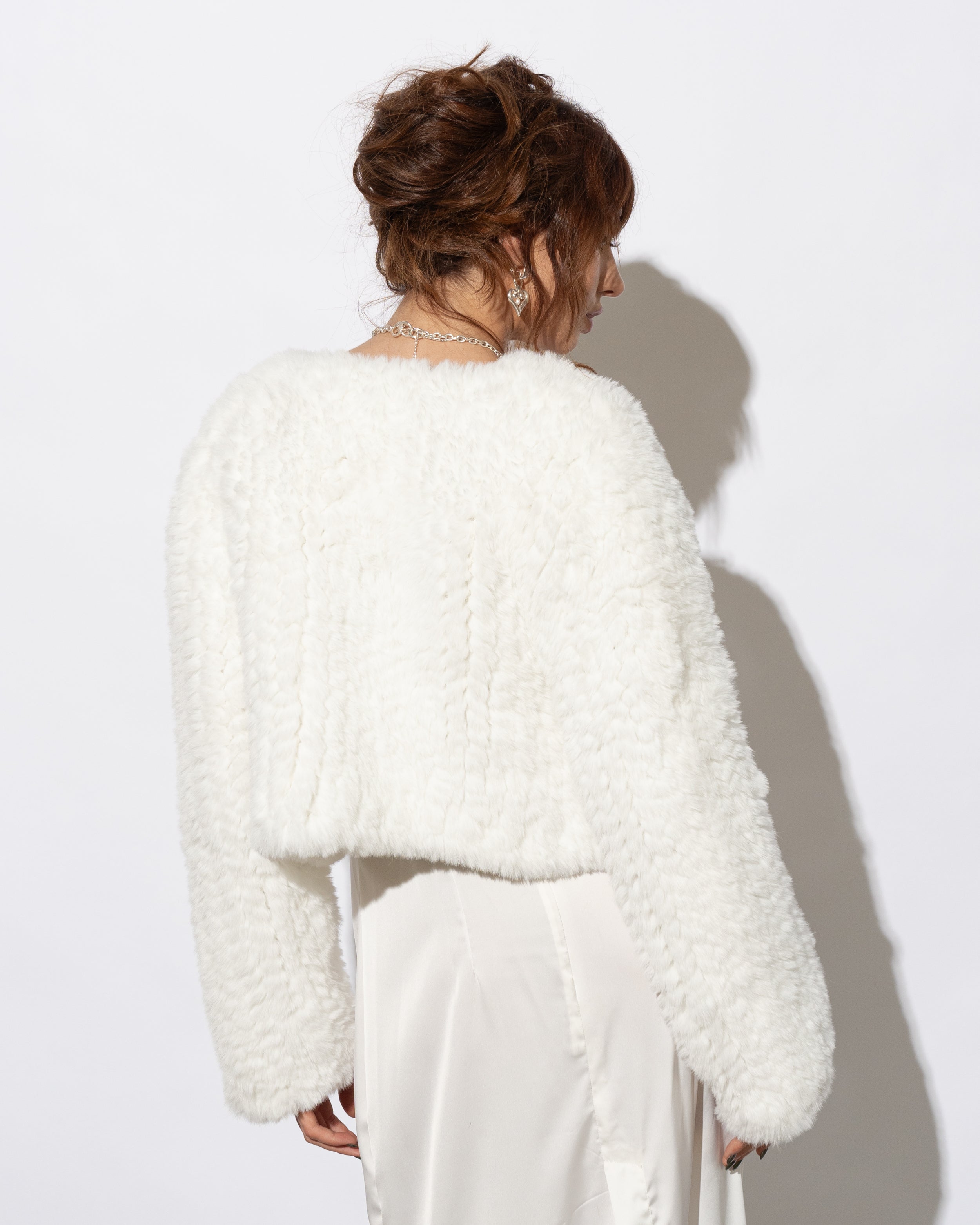Draping beautifully over your frame, the Macie Faux Fur Jacket adds an element of distinguished glamour as it effortlessly contours your silhouette. Every Macie Faux Fur Jacket is knitted by hand, creating a completely unique garment with no two jackets identical.