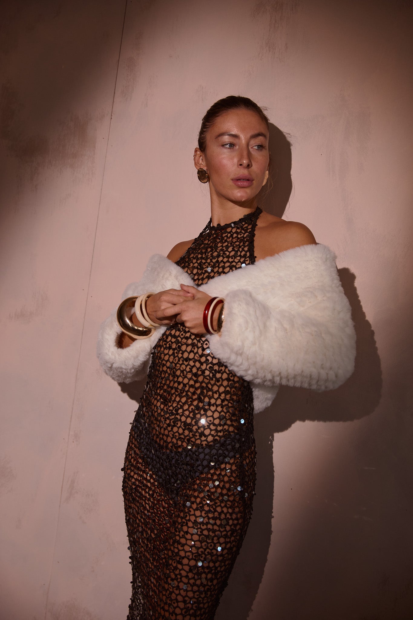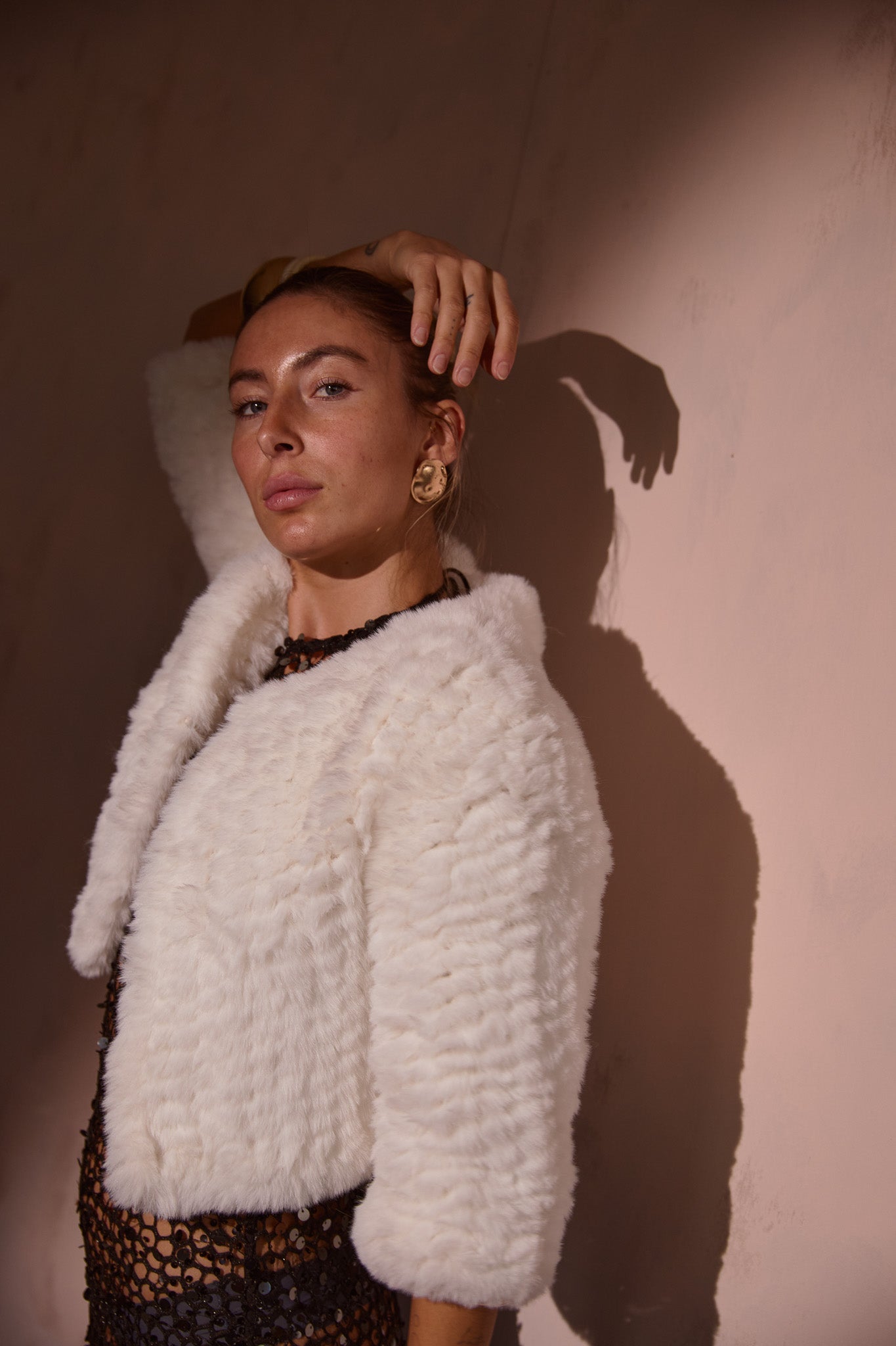 Draping beautifully over your frame, the Macie Faux Fur Jacket adds an element of distinguished glamour as it effortlessly contours your silhouette. Every Macie Faux Fur Jacket is knitted by hand, creating a completely unique garment with no two jackets identical.