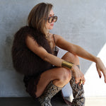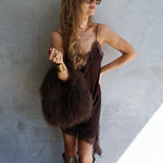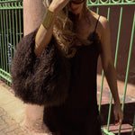 The Manhattan Bag in Cocoa is where luxury meets playful extravagance. Crafted from sumptuously soft Mongolian fur, this fluffy handbag delivers the kind of texture you can’t stop touching. The kind of glamour that turns every head in the room.