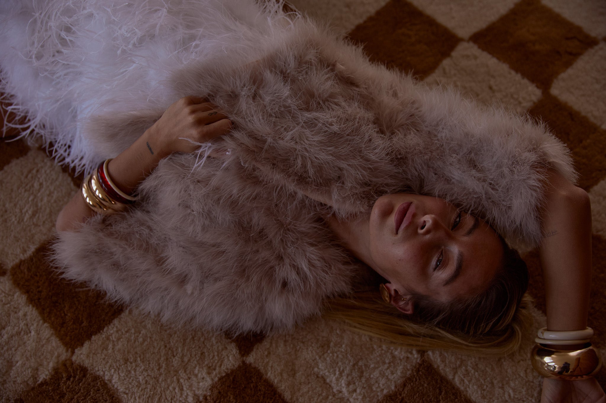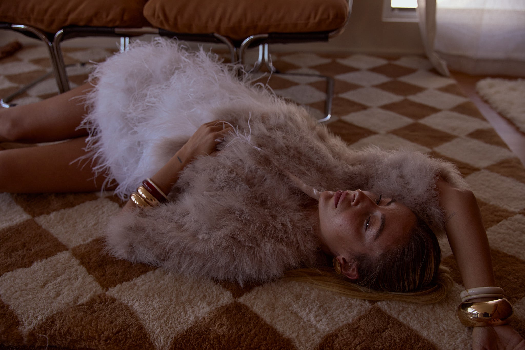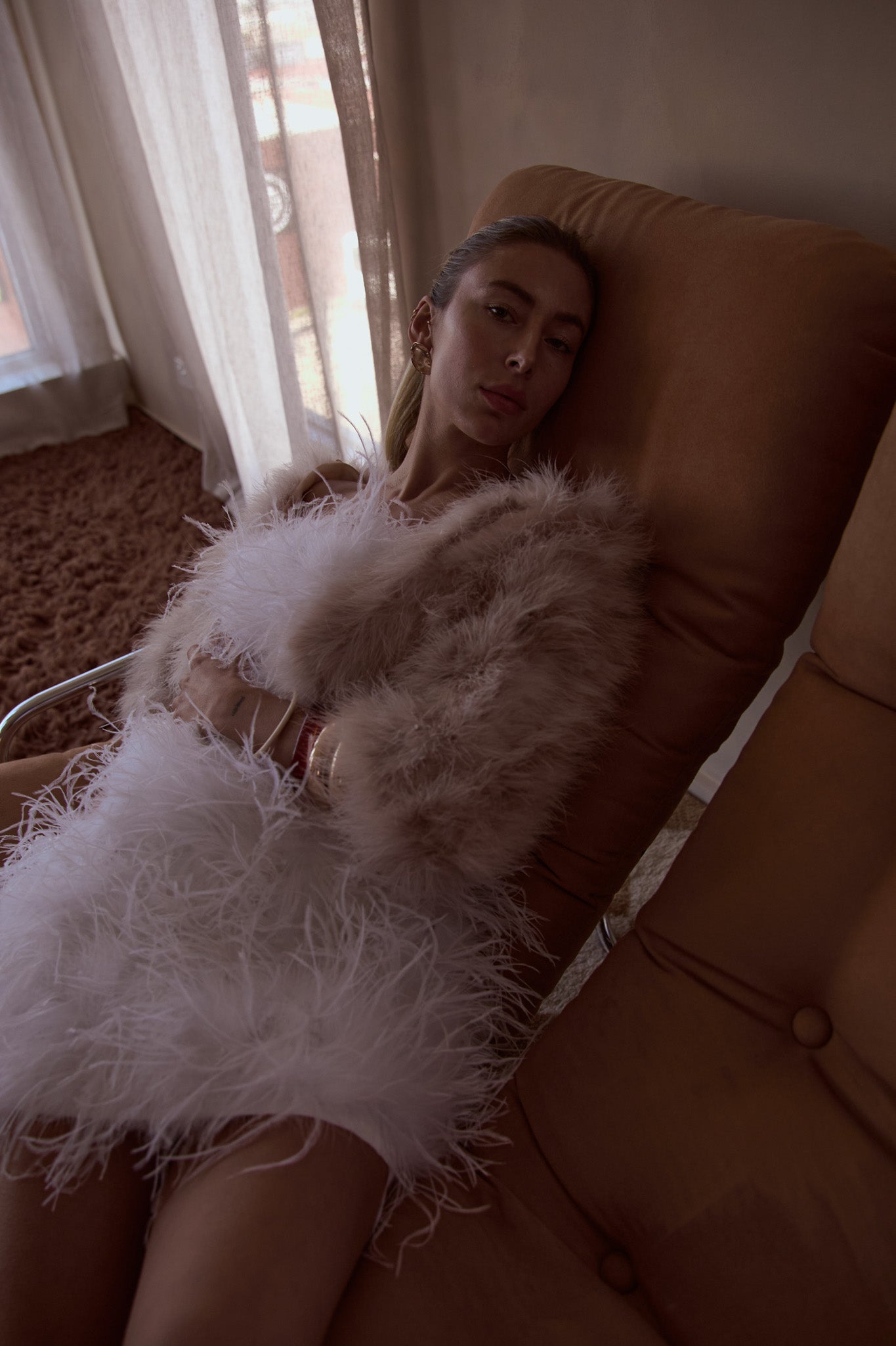 With a satin lining, and completely covered in delicate marabou feathers, this real feather jacket is incredibly lightweight and sits softly against the body.