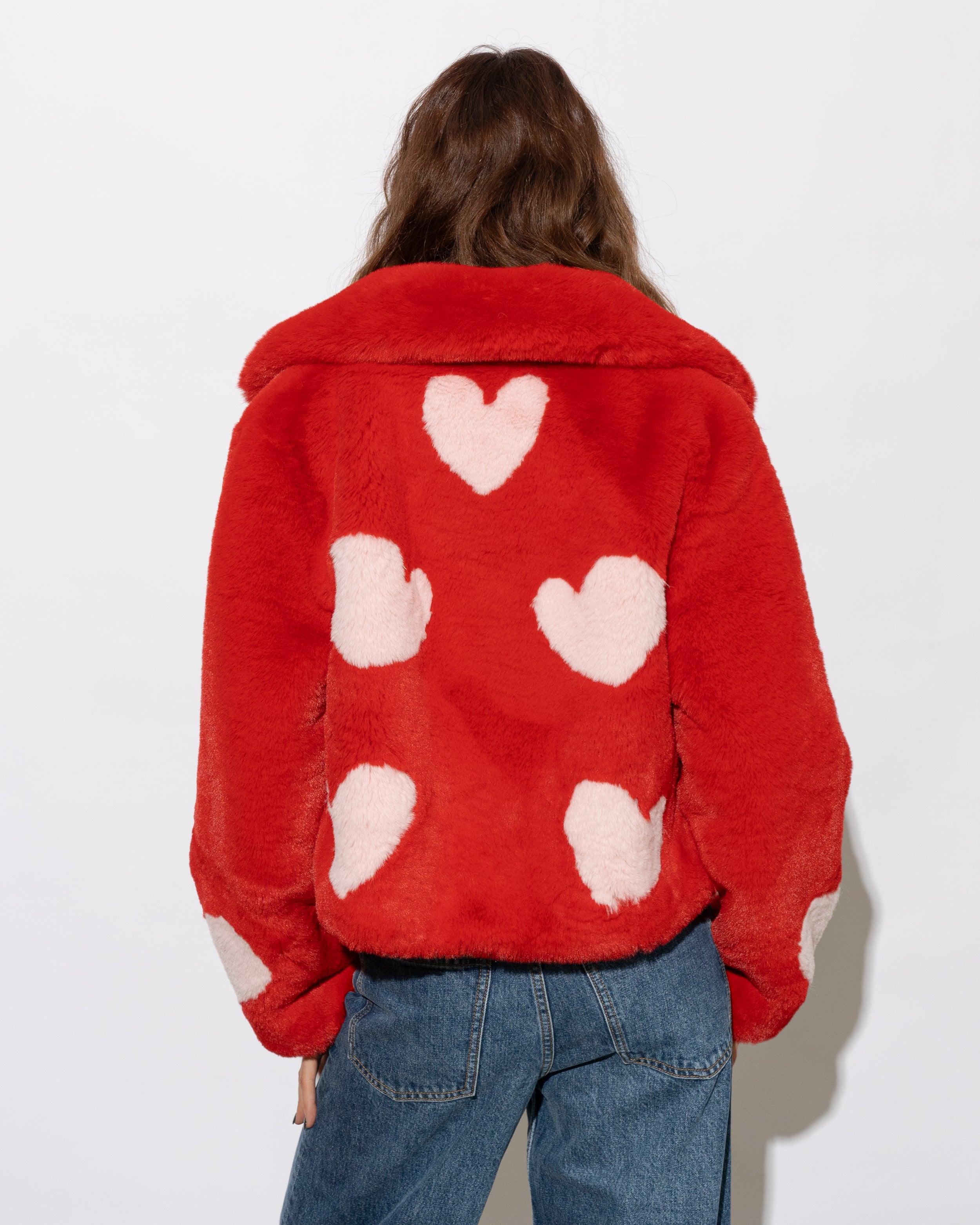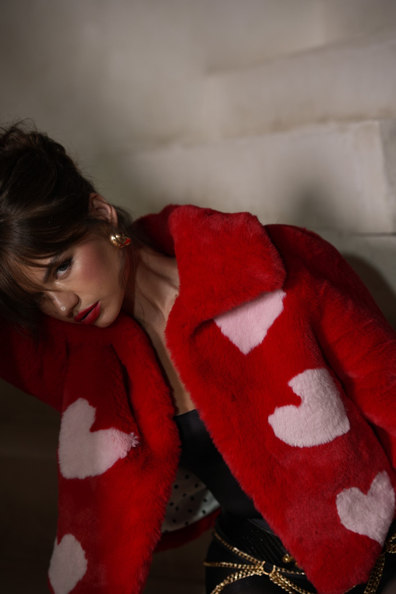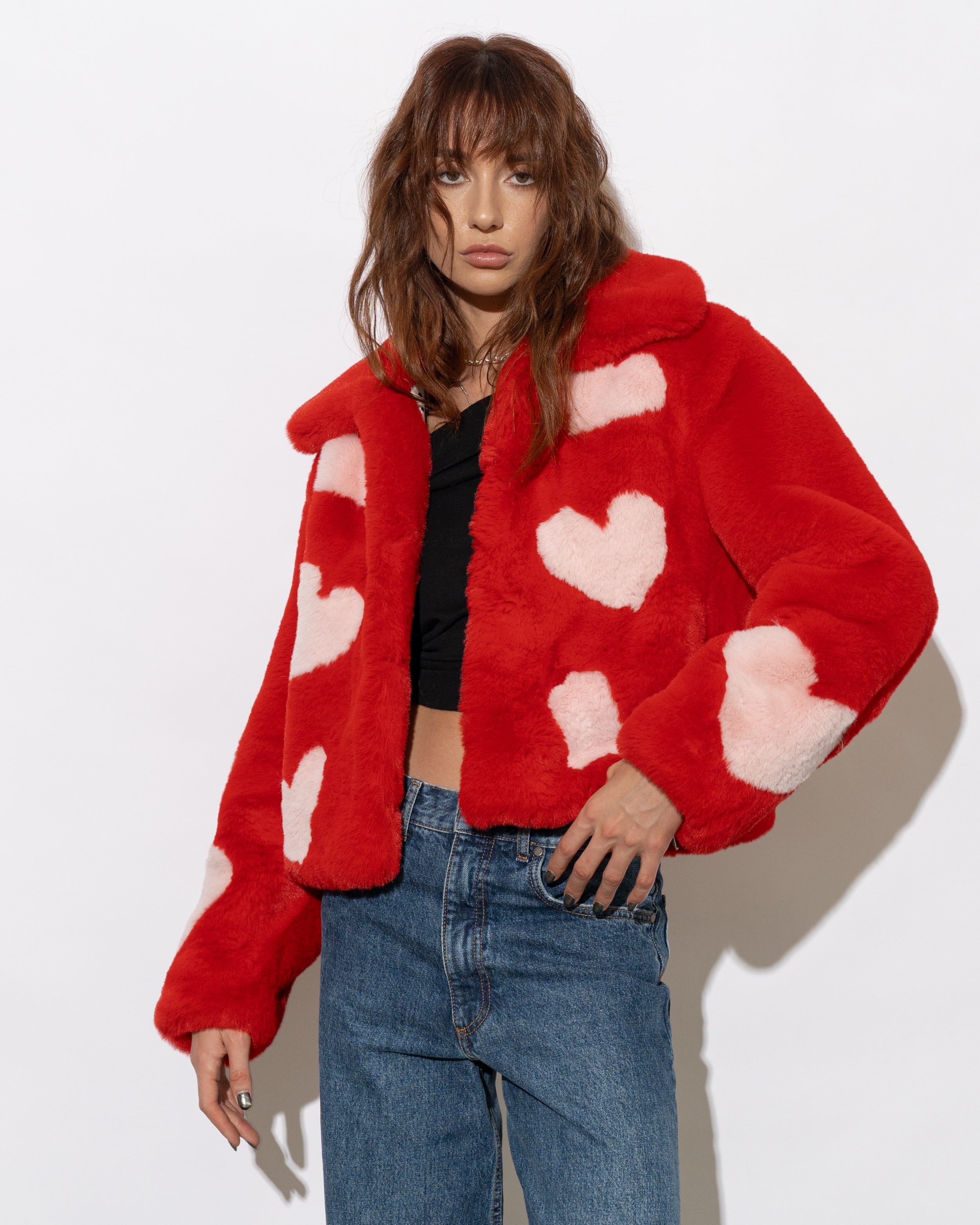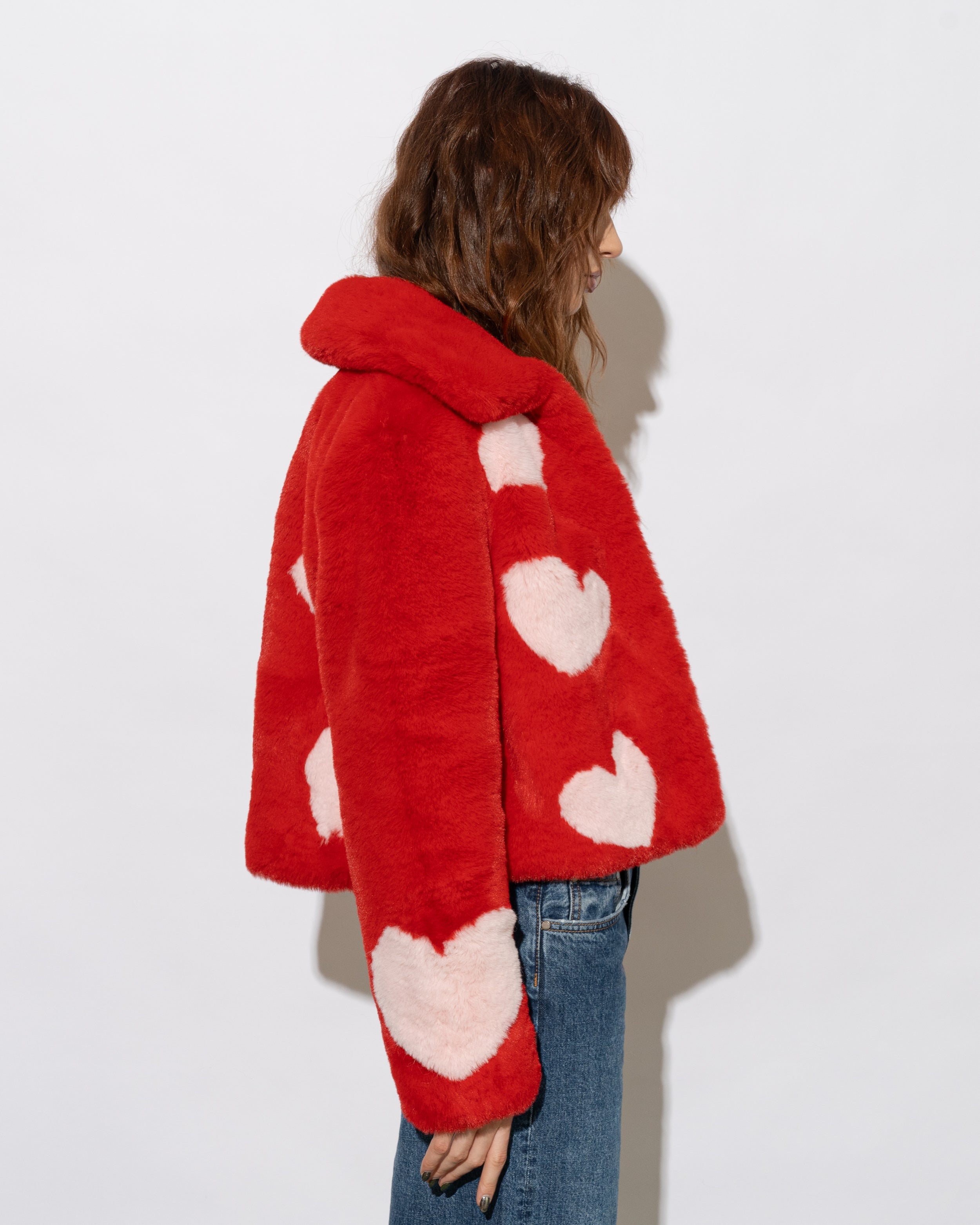 Wear your heart on your sleeve (literally!) in the Queen Of Hearts Faux Mid Coat. We've emulated our magnificent Queen of Hearts pink fur coat and created this enchanting faux mid coat version just for you. Equal part feminine and rockstar glam, this charismatic piece will turn heads this winter.