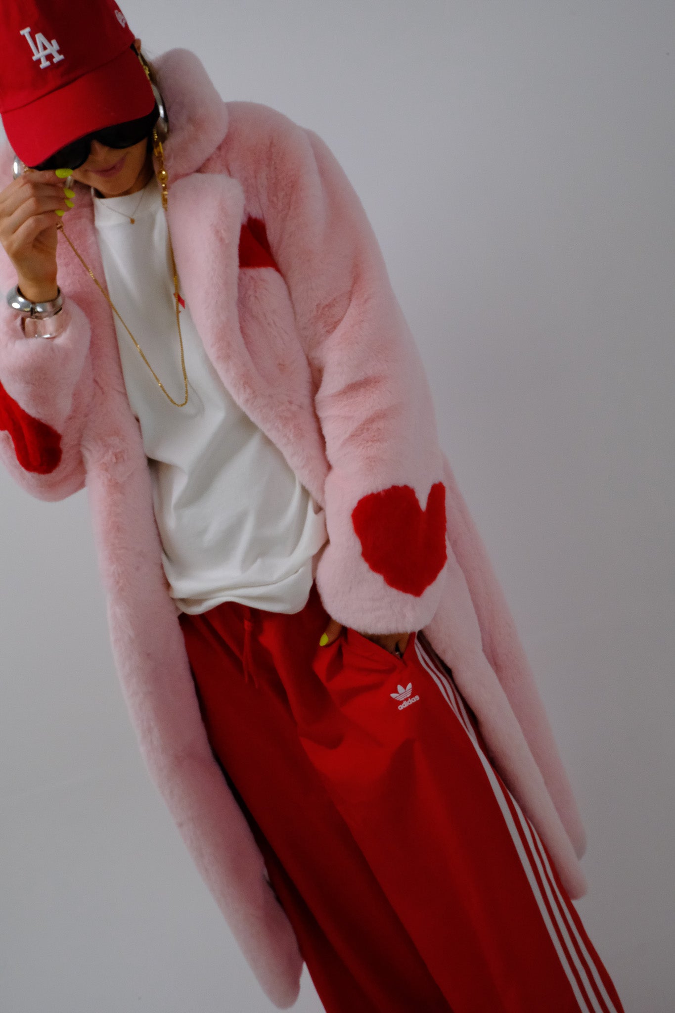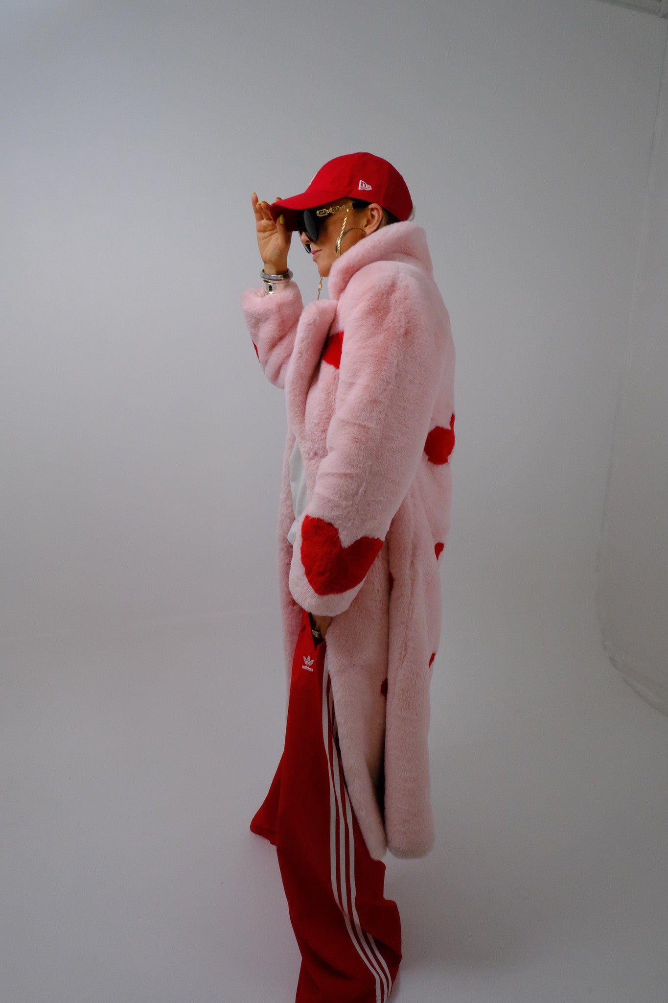 Wear your heart on your sleeve (literally!) in the Queen Of Hearts Faux Coat. We've emulated our magnificent Queen of Hearts pink fur coat and created this enchanting faux-fur version just for you. Equal part feminine and rockstar glam, this charismatic piece will turn heads this winter.