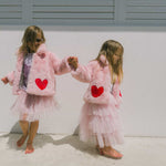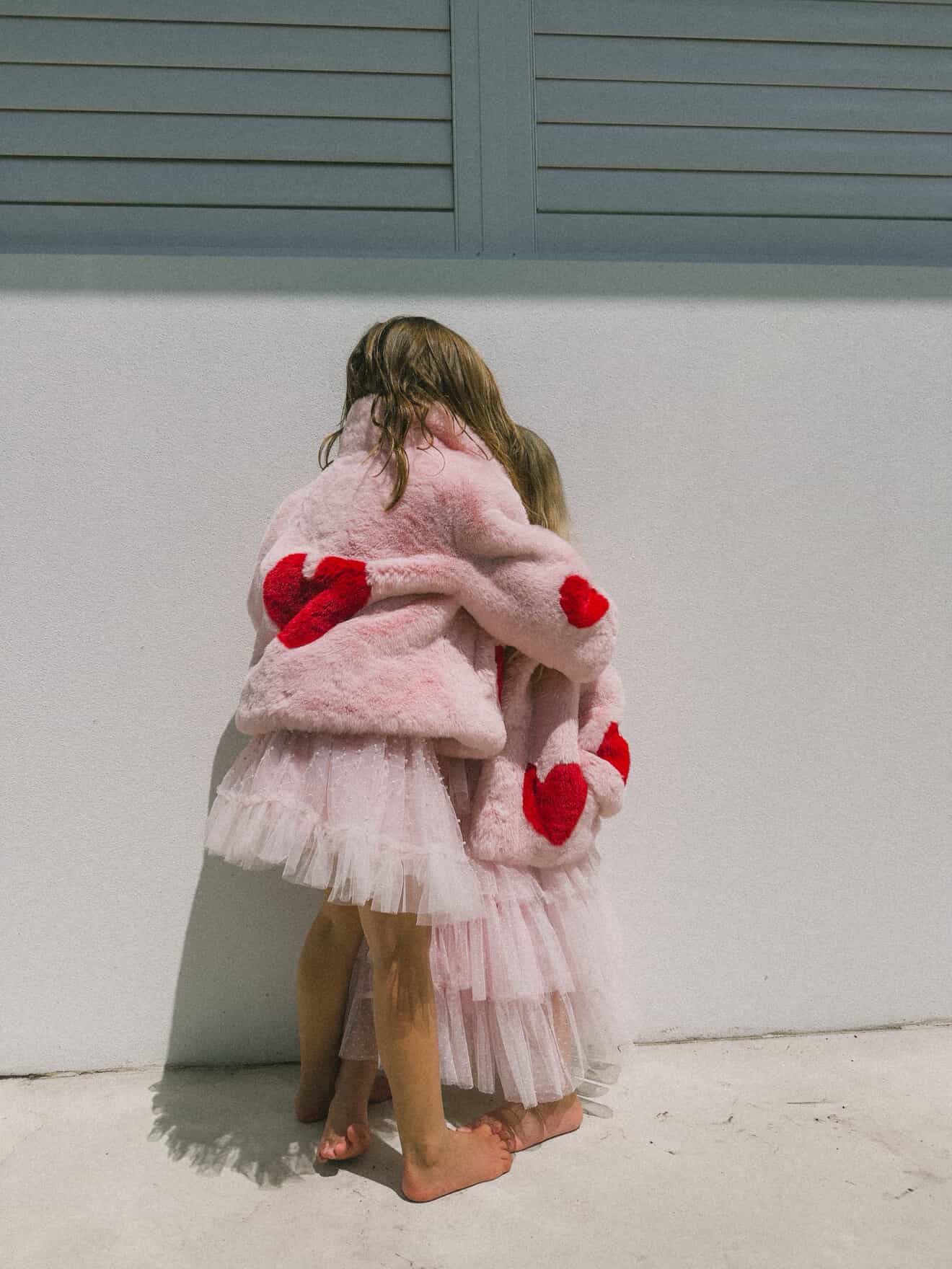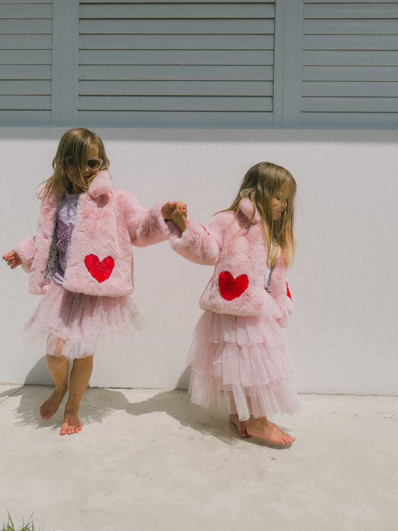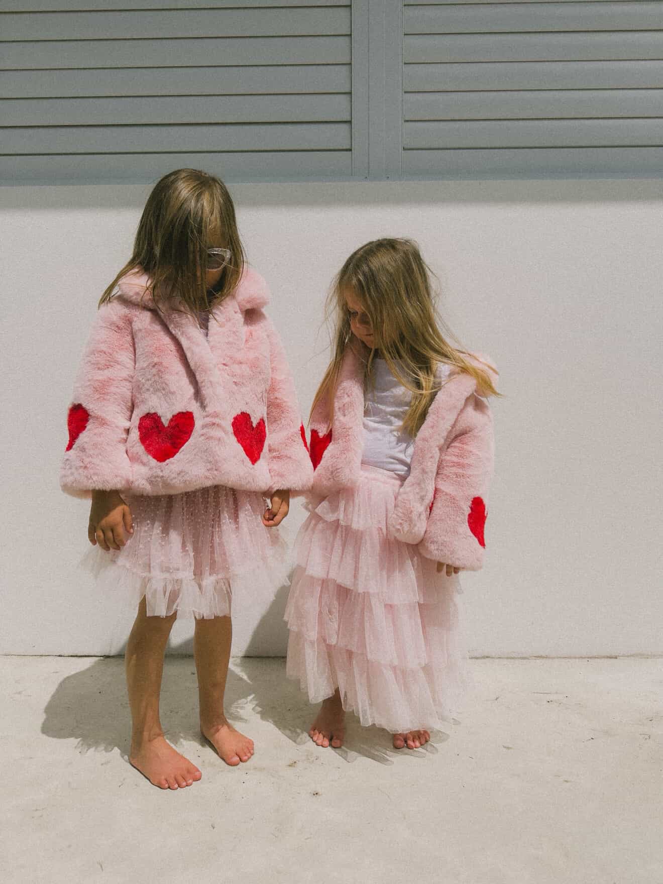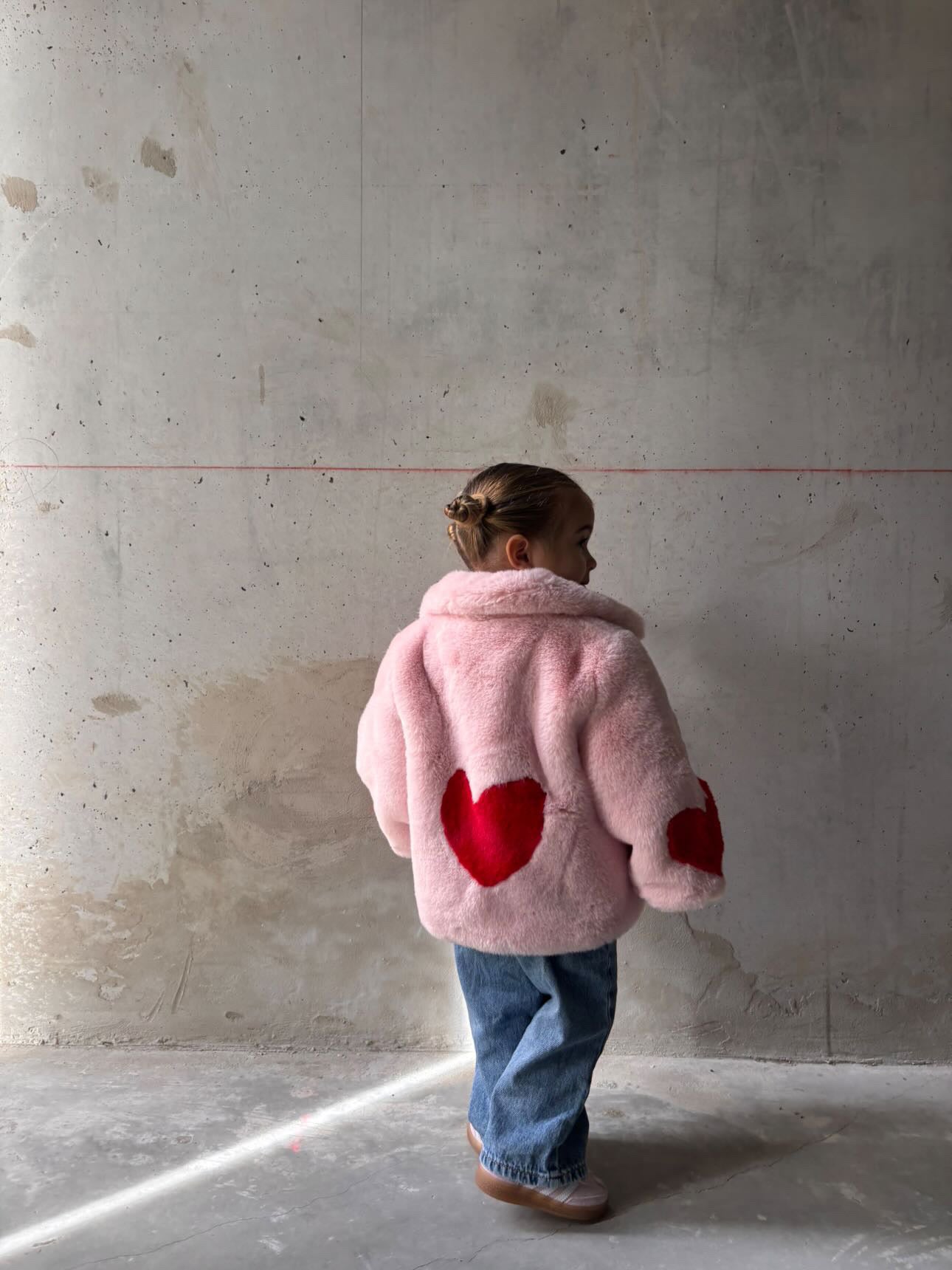 Wear your heart on your sleeve (literally!) in the Queen Of Hearts Mini Faux Coat. We've emulated our magnificent Queen of Hearts pink fur coat and created this enchanting faux-fur version just for your mini-me. Equal part feminine and rockstar glam, this charismatic piece will turn heads this winter.
