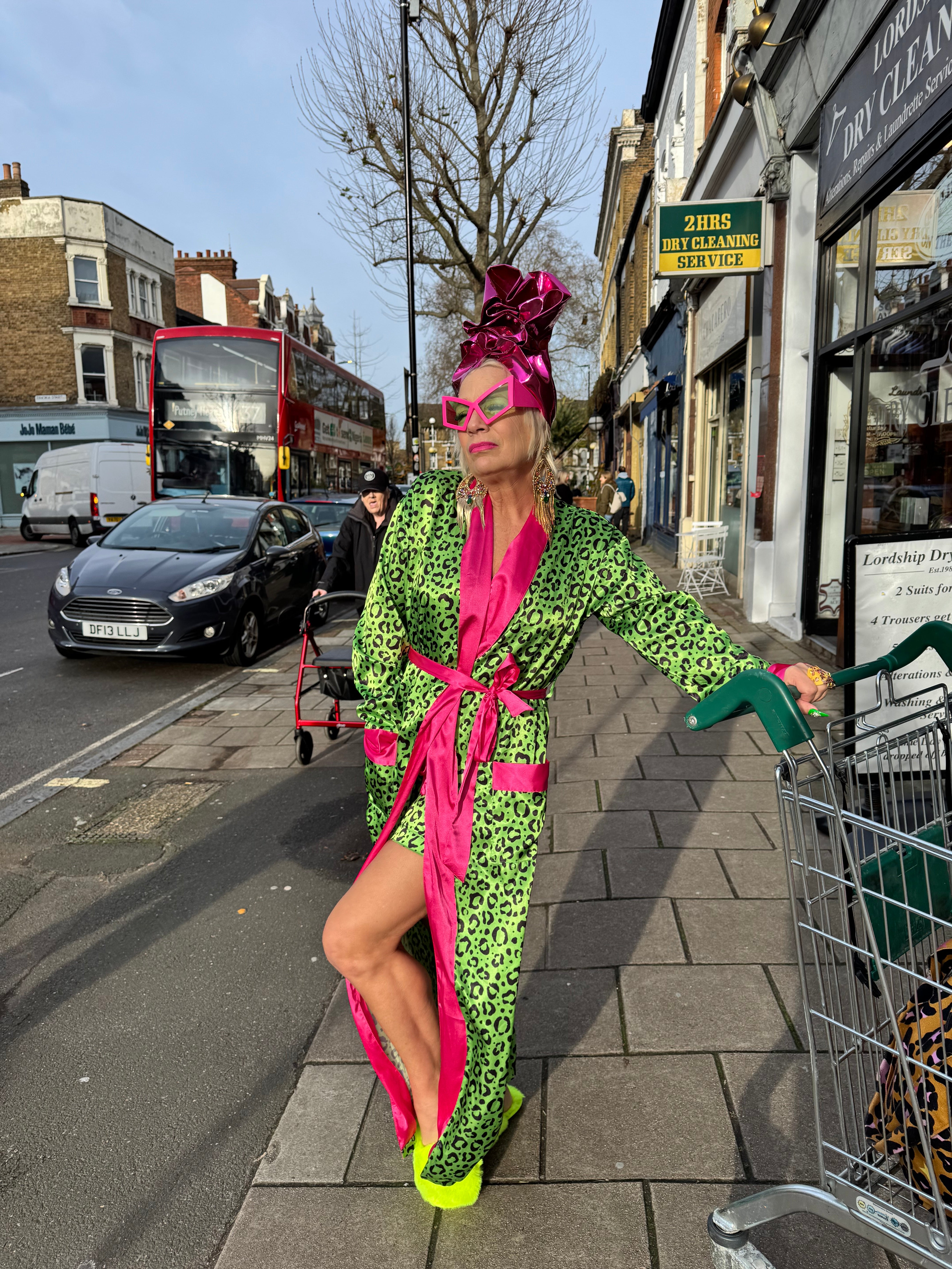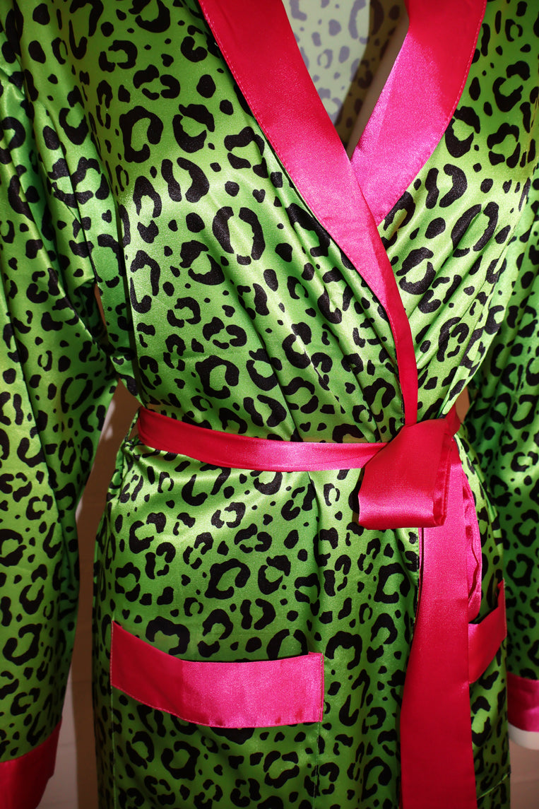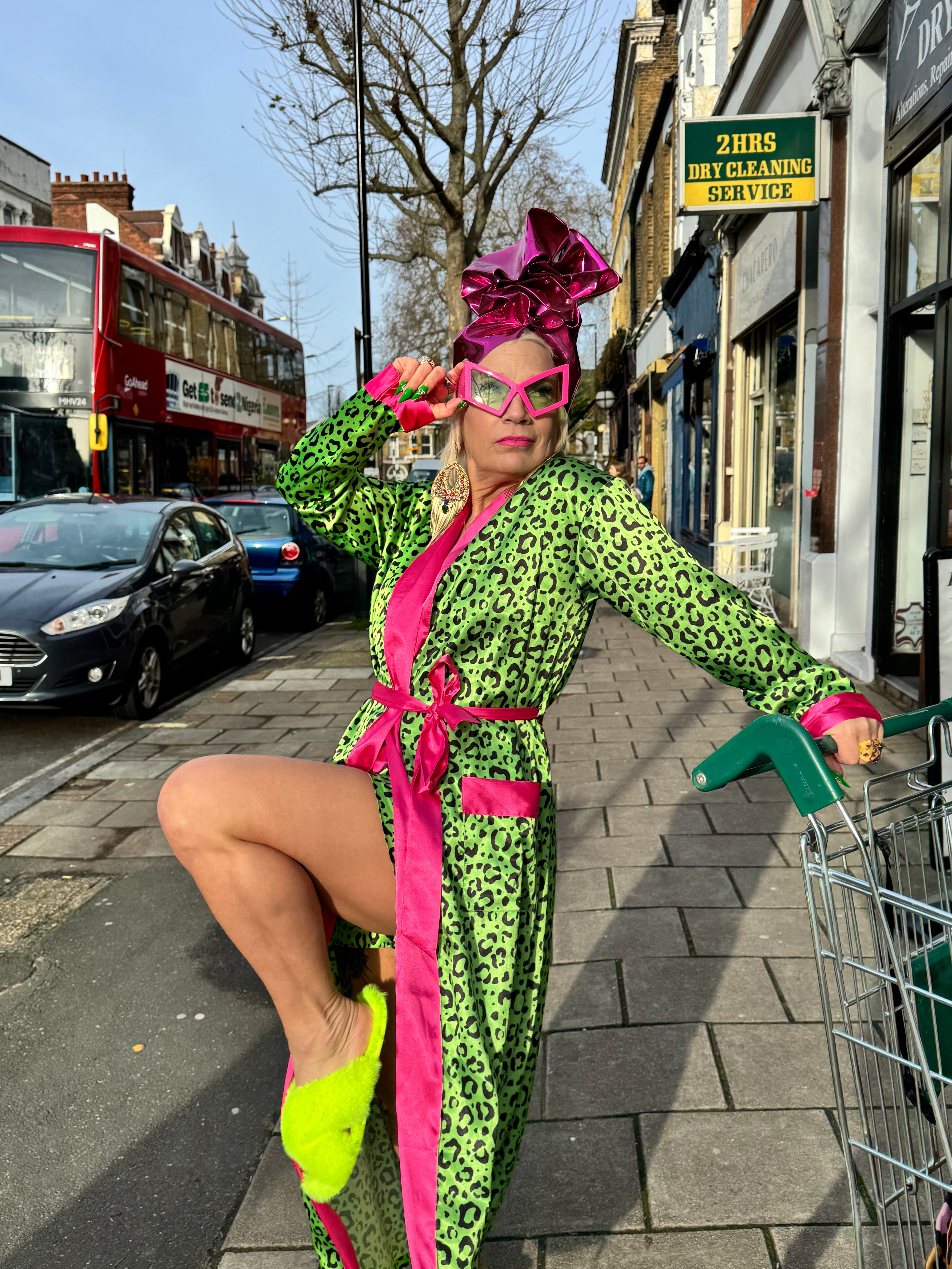 This curated line is dripping in high-octane glamour, featuring wild neon green leopard prints and sizzling hot pink that screams, “Knock knock b*tches, I’ve arrived!” Imagine prowling around in head-turning pyjama sets that blur the line between bedtime and red carpet, or stepping out in neon yellow slippers so fierce they deserve their own spotlight.