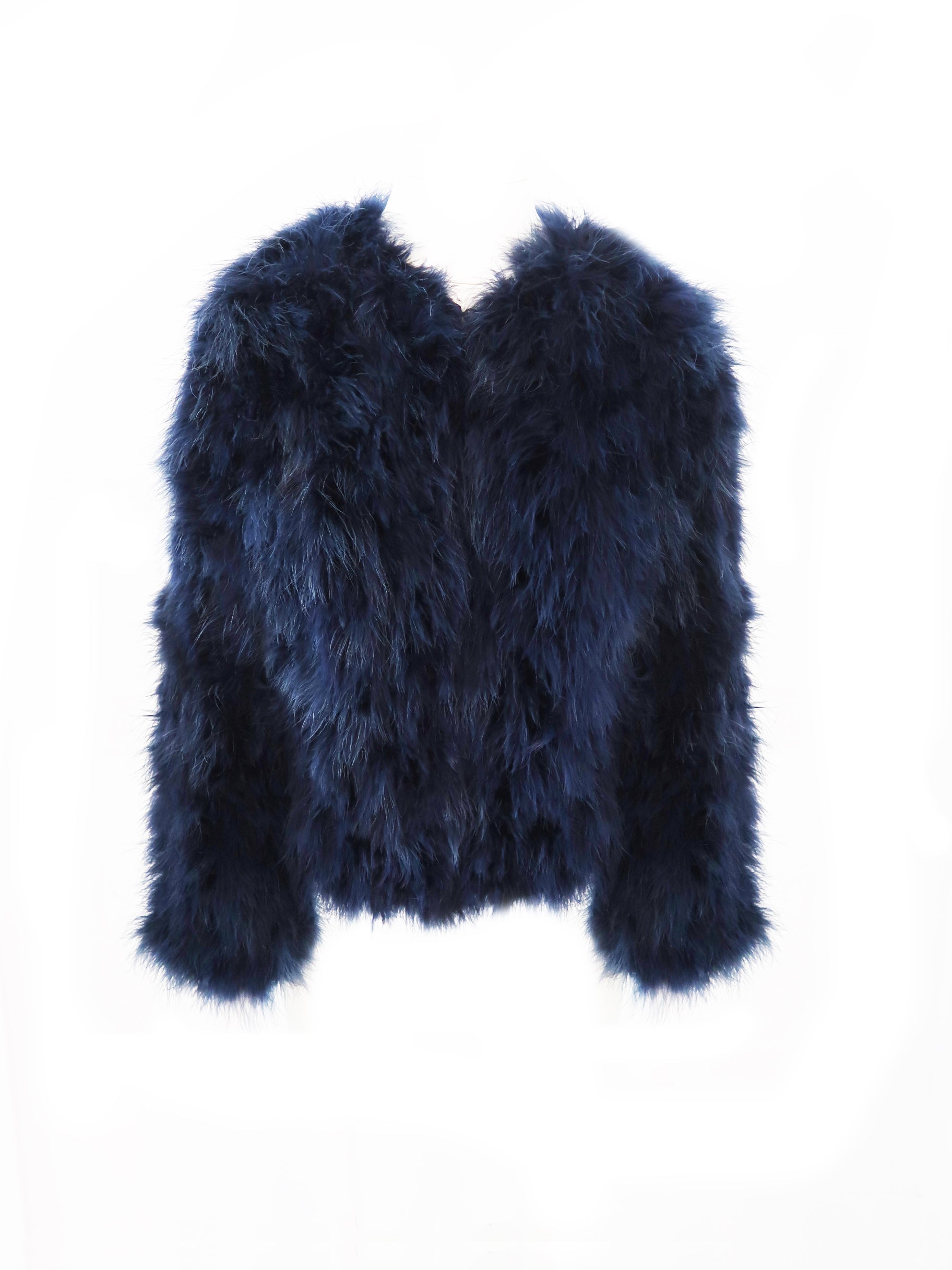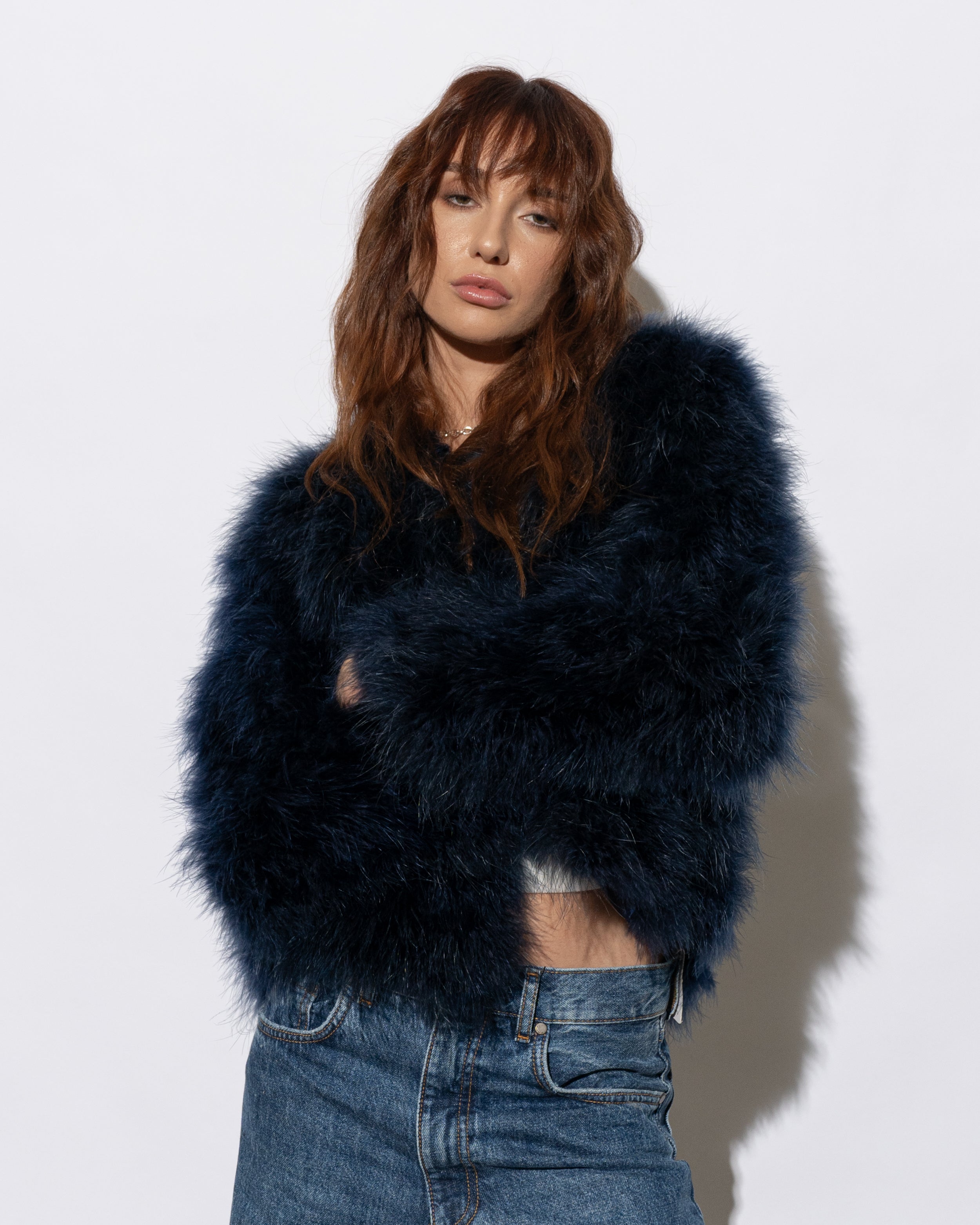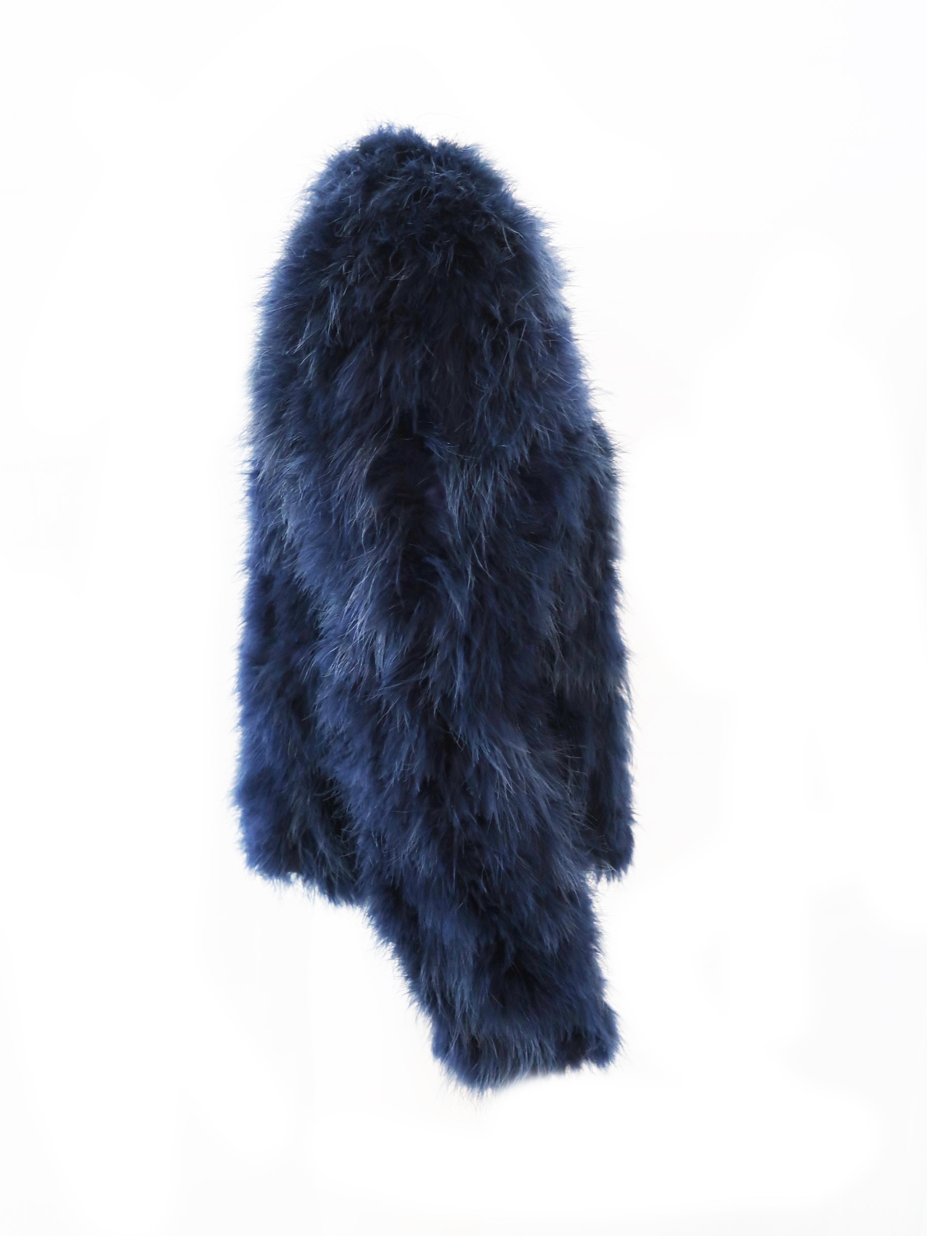 The Saville jacket is made from 100% marabou feather with satin lining.